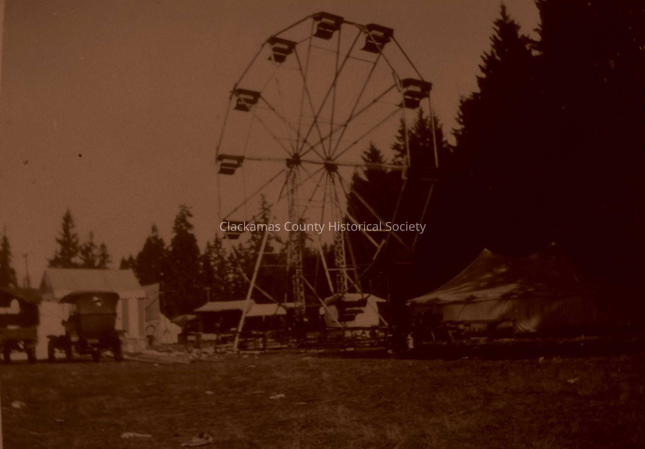 The Midway at the Canby Fair Grounds - 1913 - Canby, Oregon. Ferris Wheel