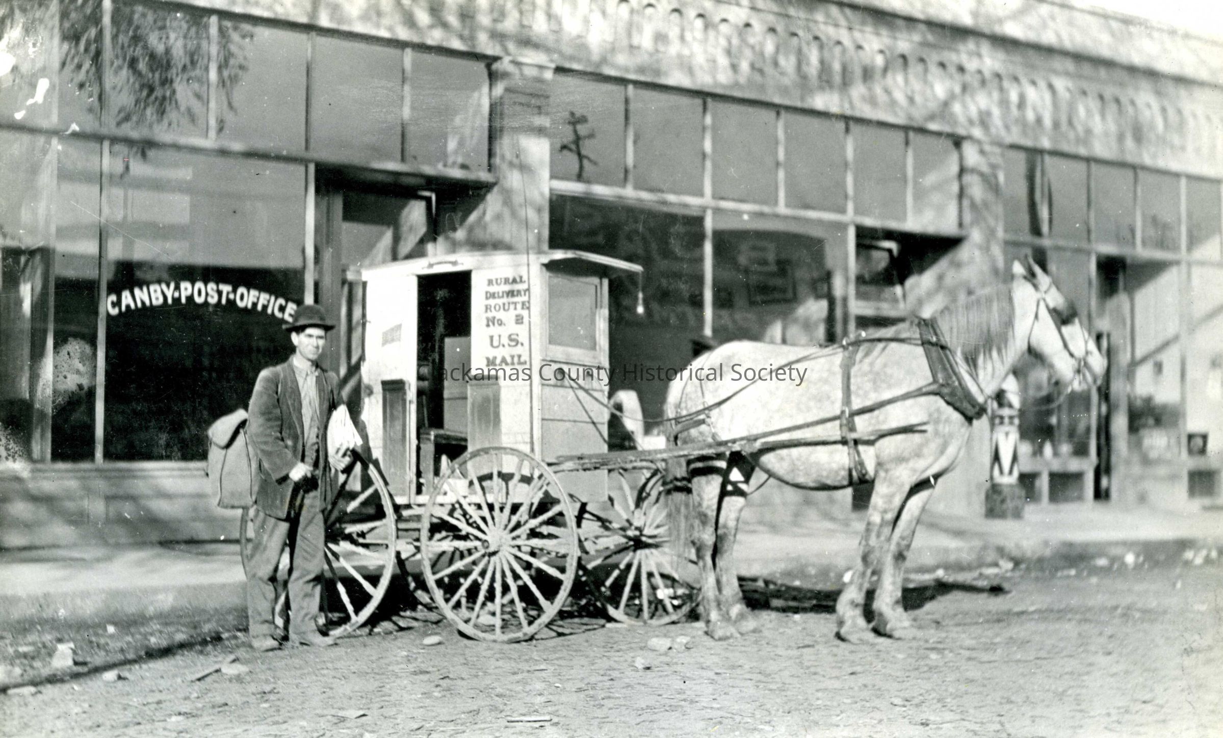 Canby Rural Mail Carrier, Route #2, at Canby Post Office.Made/Created