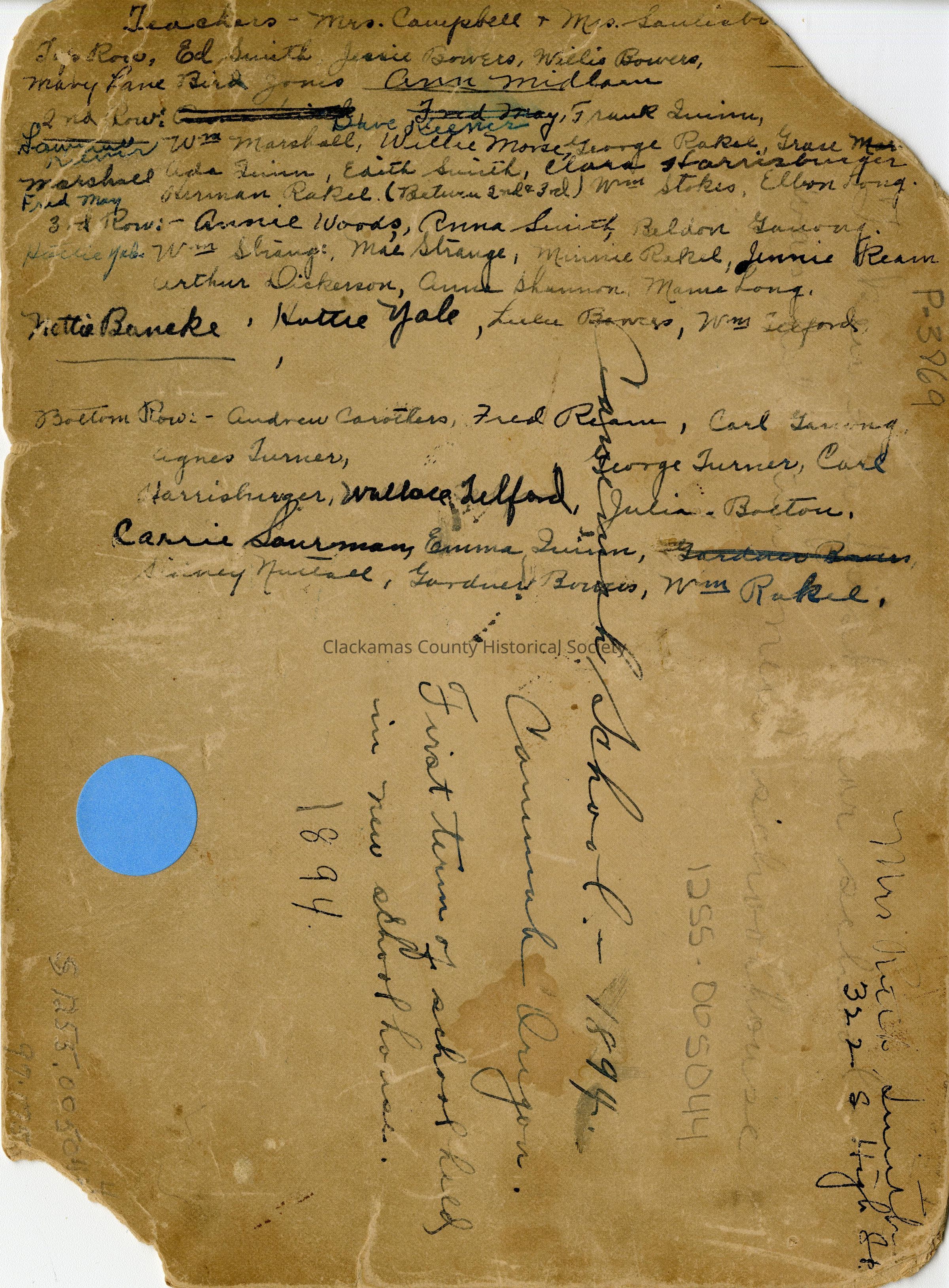 Canemah School Students 1894Entry/Object ID
