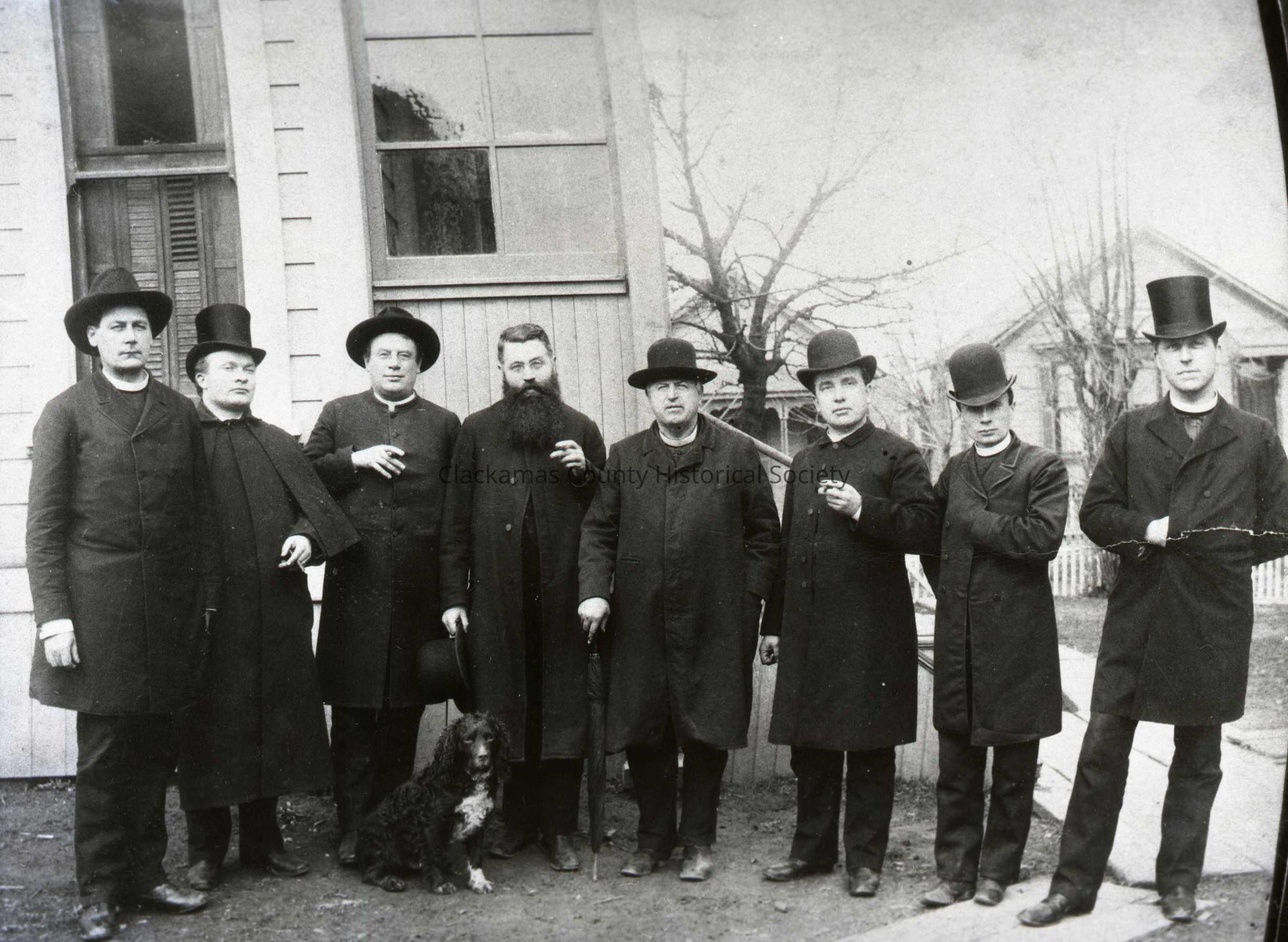 L-R): 1) ?; 2) Father Hildebrand (Oregon City); 3) Father Sommerville; 4) Father Ver Hagg; 5) Father McDevit; 6) Father James Rauw; 7) Father Bolle; and 8) Father Loomis.Made/Created