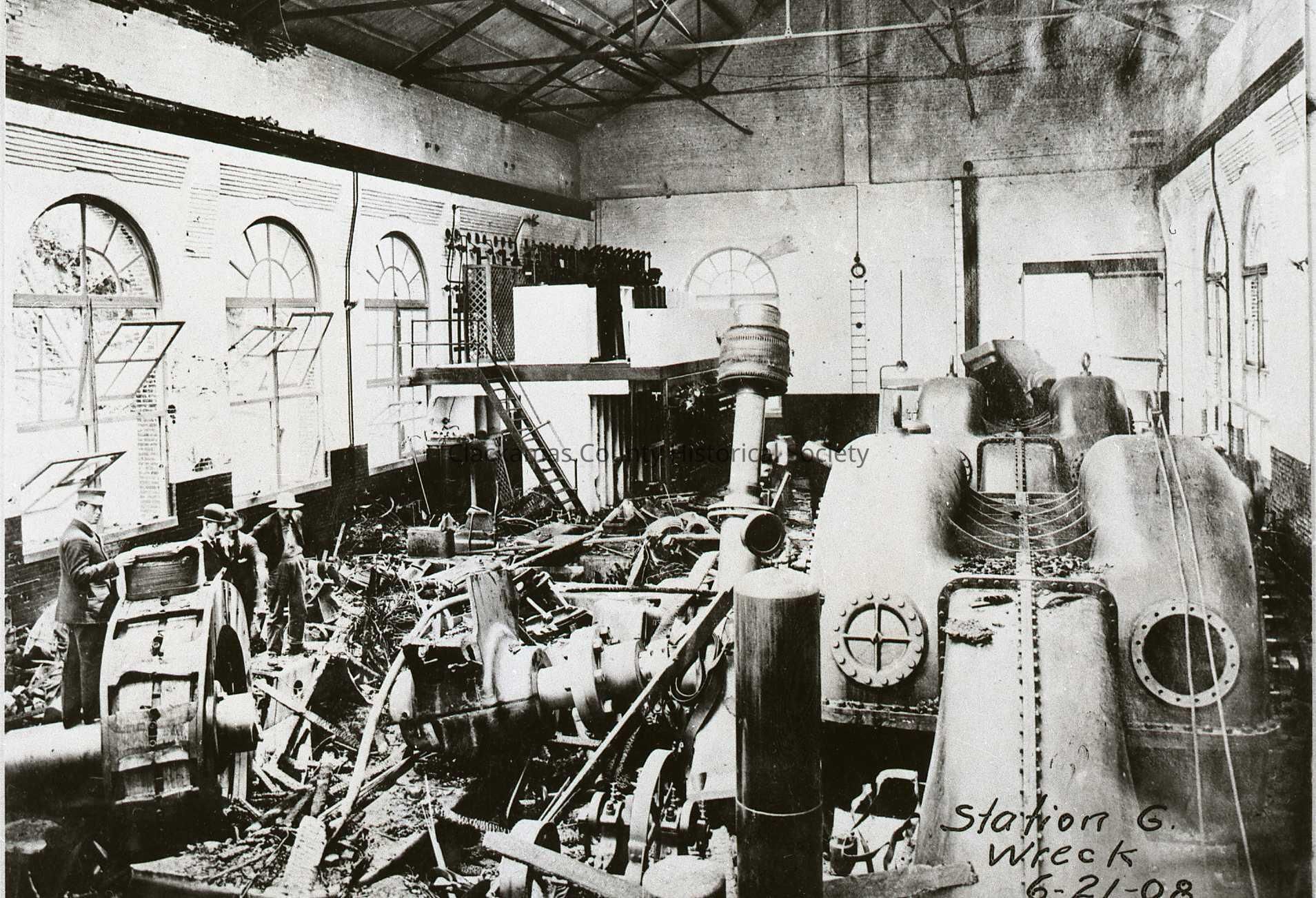 Cazadero Dam Station "G" 1908 - Interior After Explosion Looking West - Clackamas River, OregonEntry/Object ID
