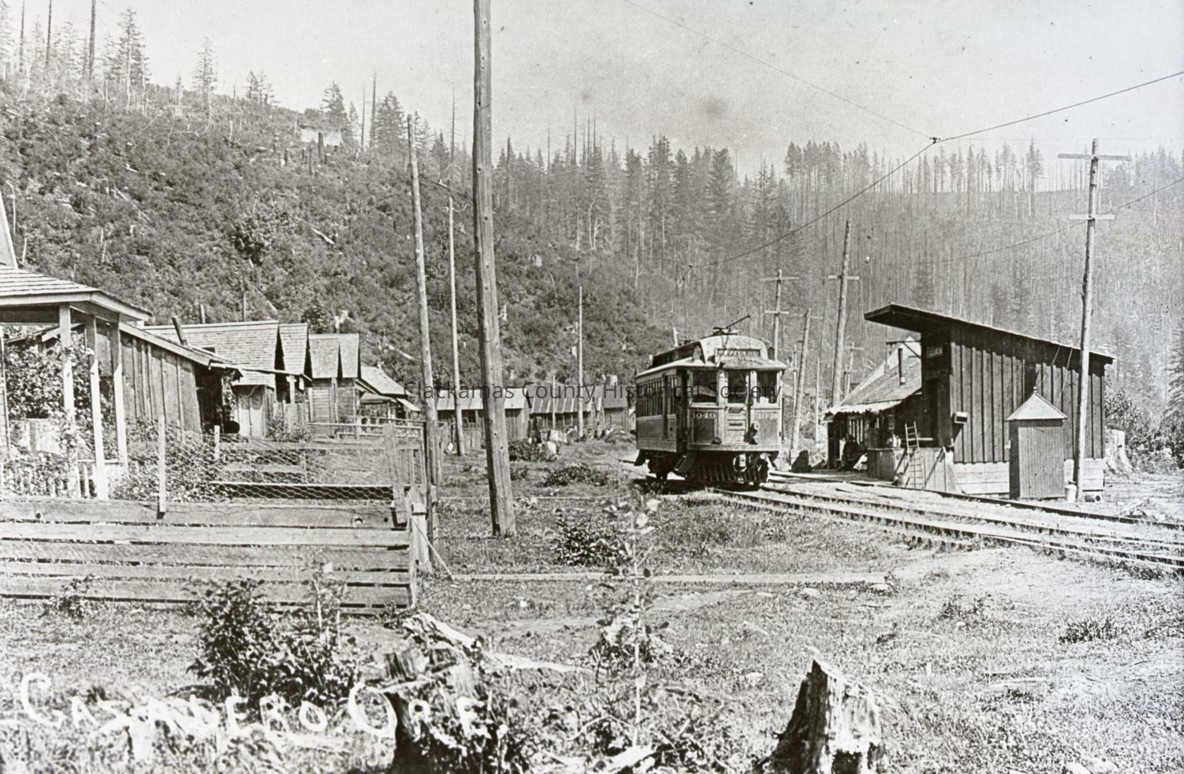 Cazadero Oregon - 1905 - Railroad Depot and Trolley CarEntry/Object ID