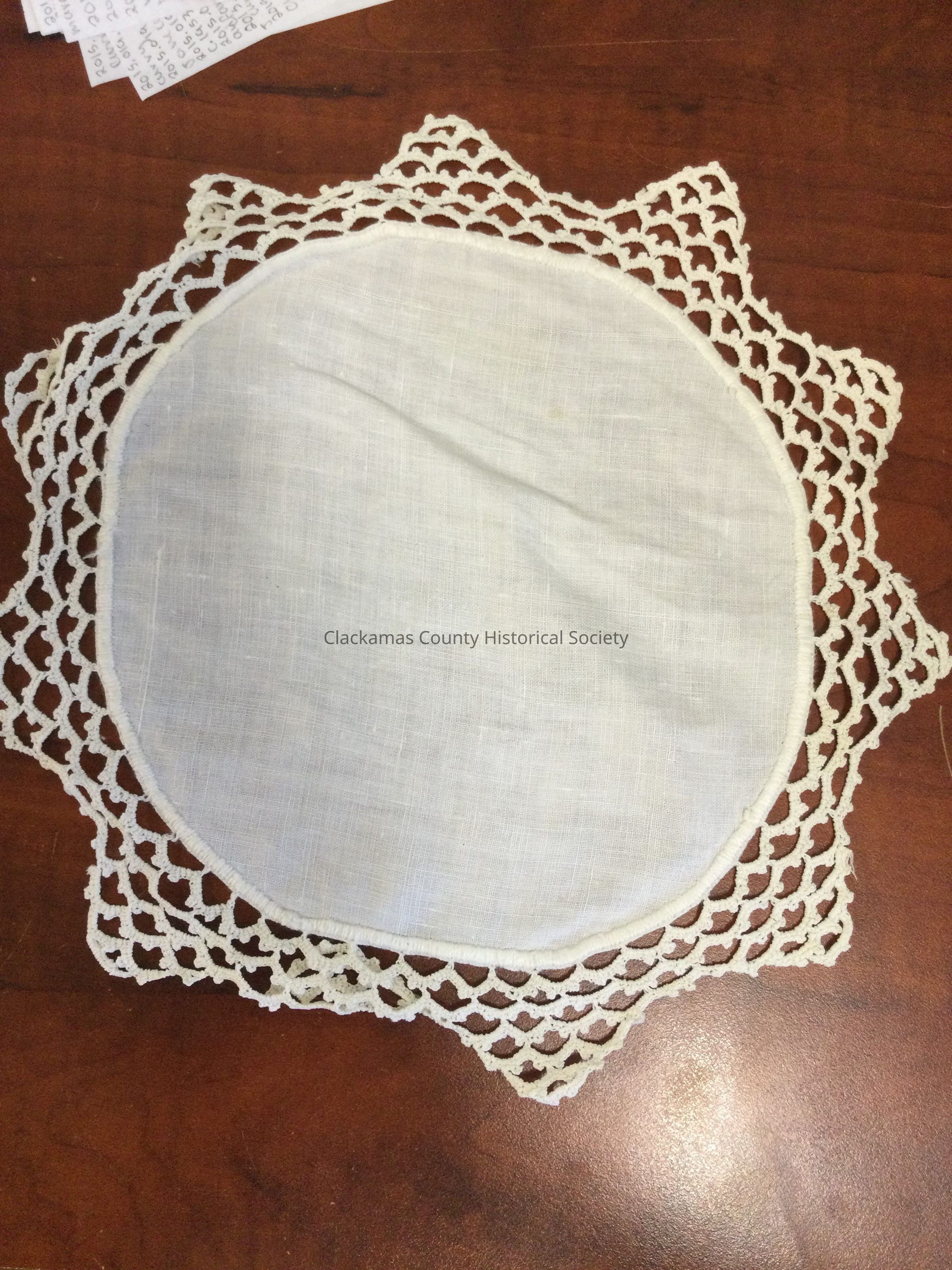 Circular white cloth with trim/Marrs-Curry/Unknown Provenance