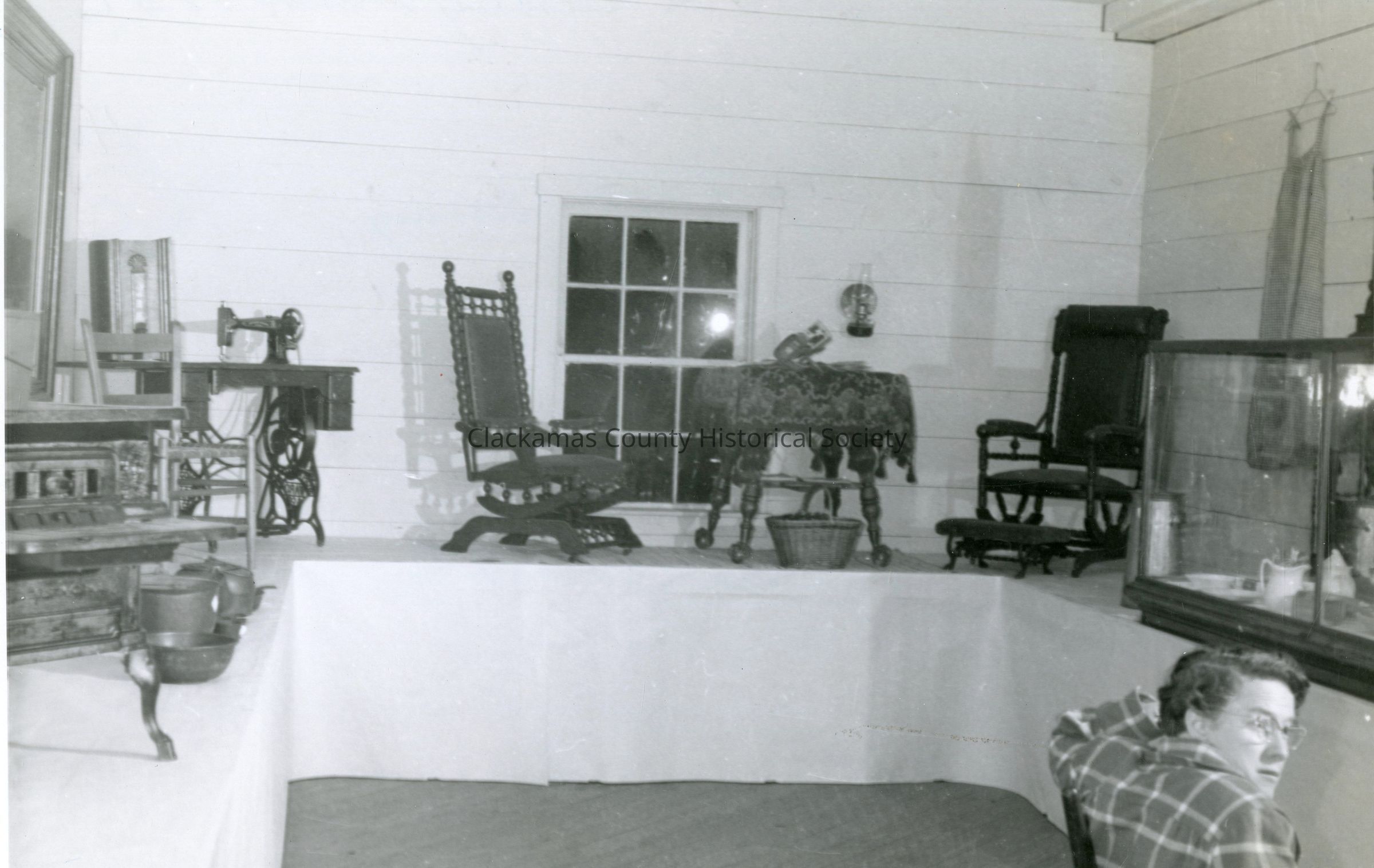 Canby Fair, 1956. Clackamas County Historical Society Display. Clothes, furniture household items.