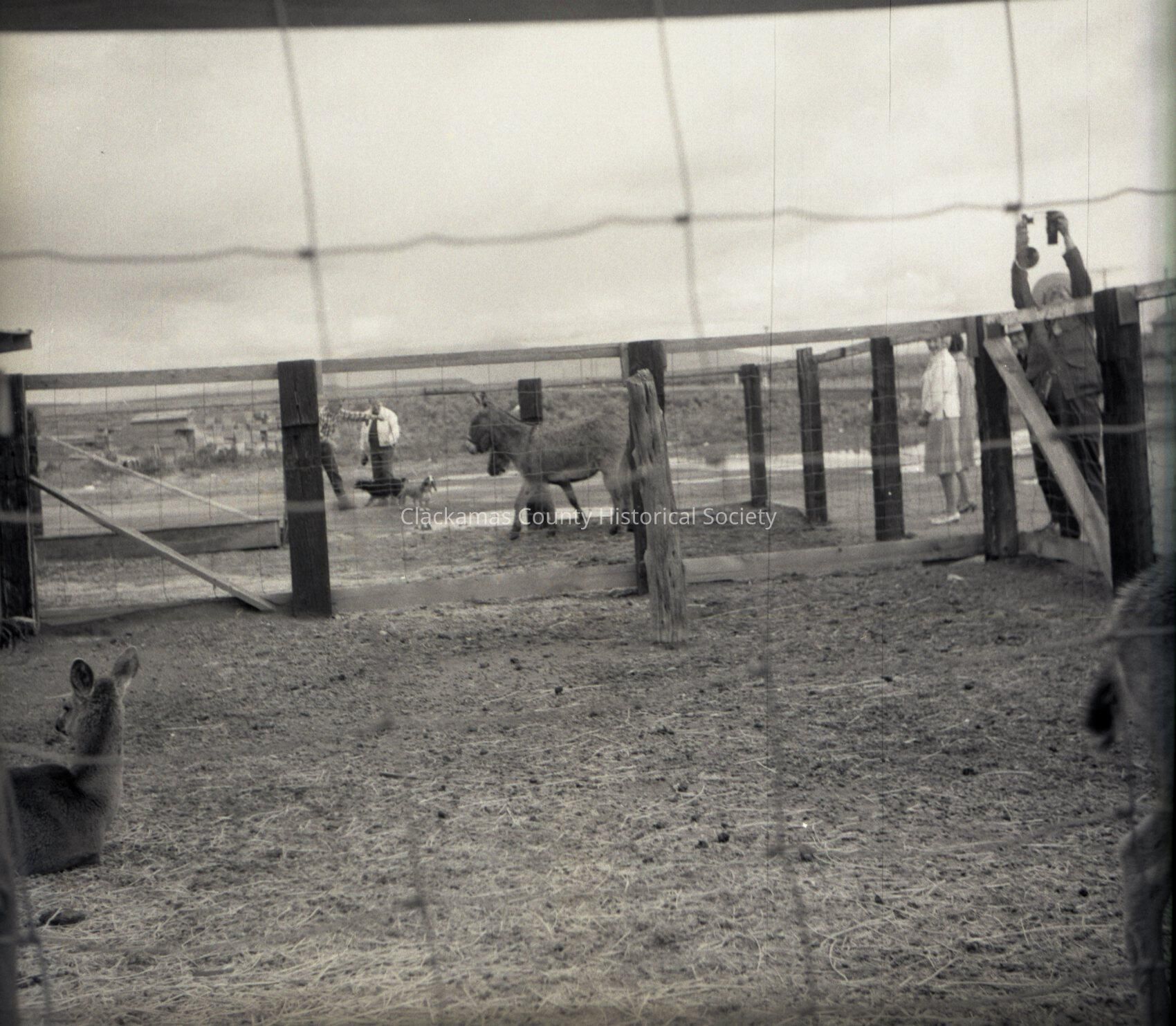 Clackamas County Historical Society Trip to Harney County, #1. Donkeys and mules in a corral.Made/Created