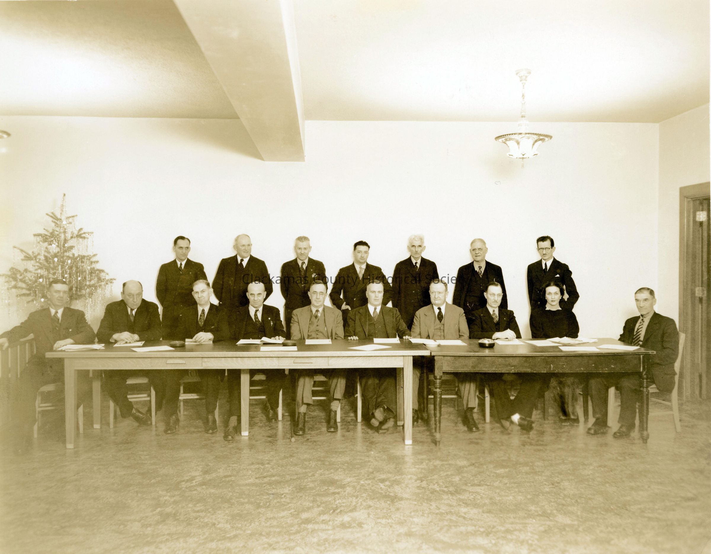Clackamas County Planning Board, 1937. During the Depression years a county planning board assisted in affecting programs relating to public welfare. Their activities included local organization and planning required when obtaining funds for public works projects.
