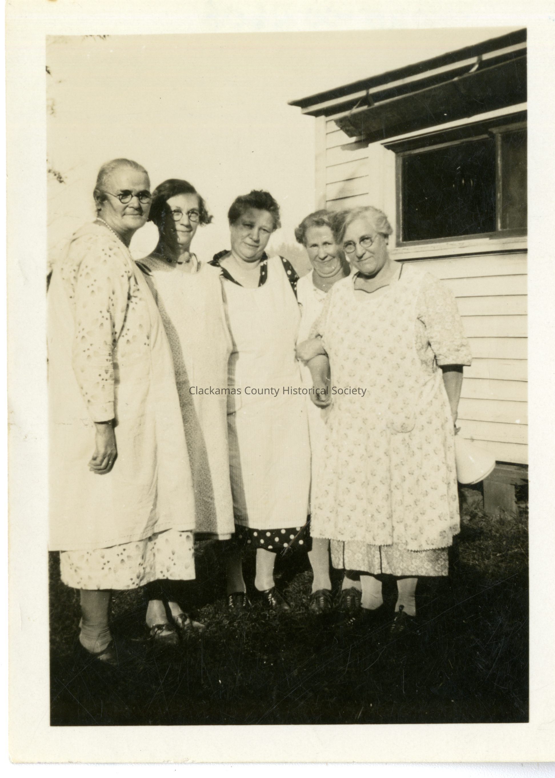 Left to right, Mrs. Griffey, Mrs. Lawrence, Jessie (the cake maker), Mrs. Royer, and Mollie (Mary) Talbert. All Clackamas M.E. Church Ladies Aid women.Other Names and Numbers