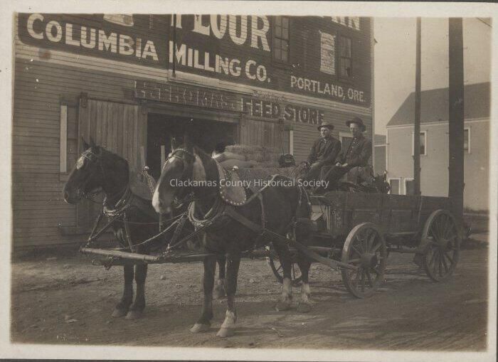 Columbia Milling Co. Portland Oregon two horses and wagon two men driving