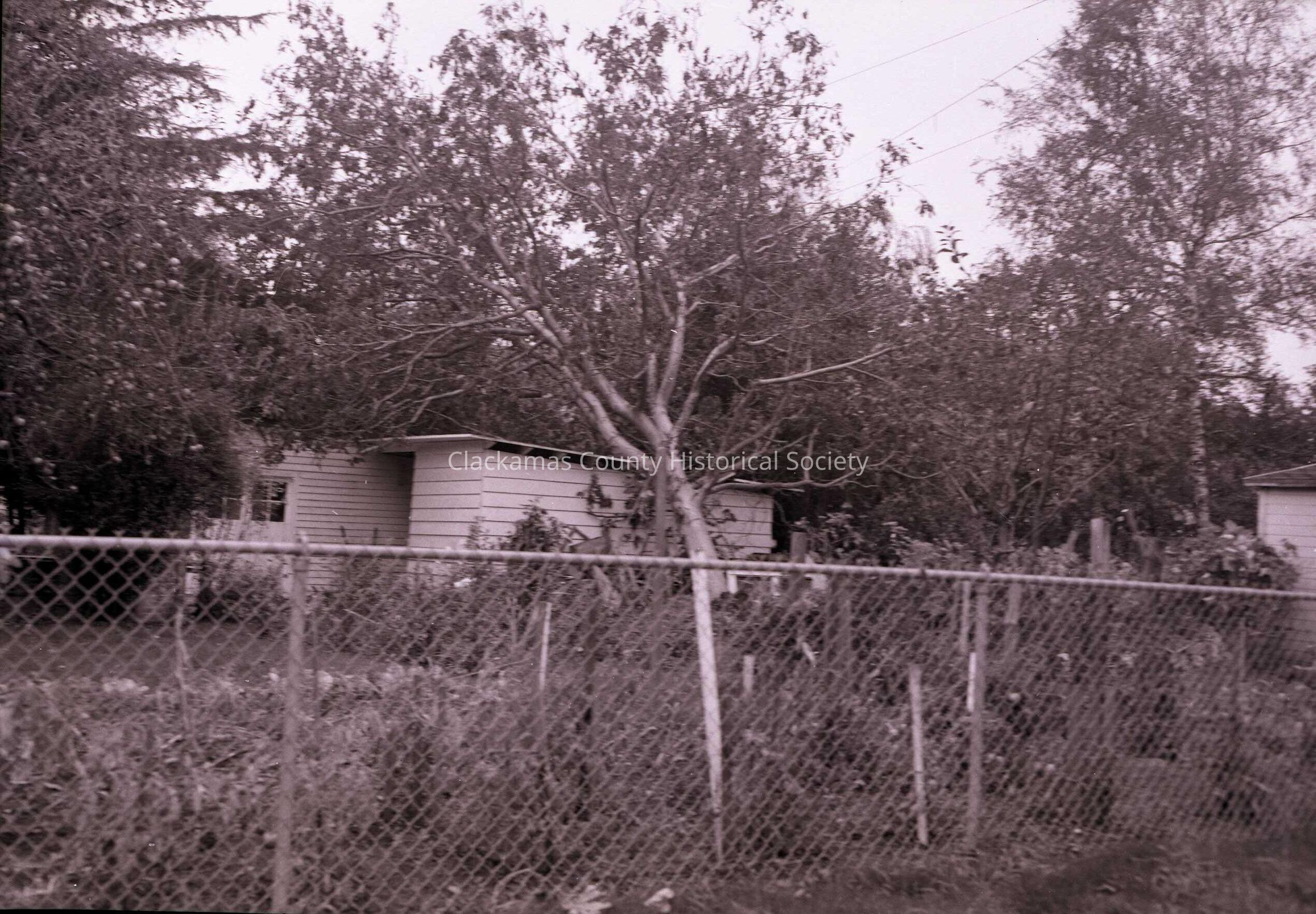 Fallen tree on house, #2, After Columbus Day Wind Storm, 1962.
