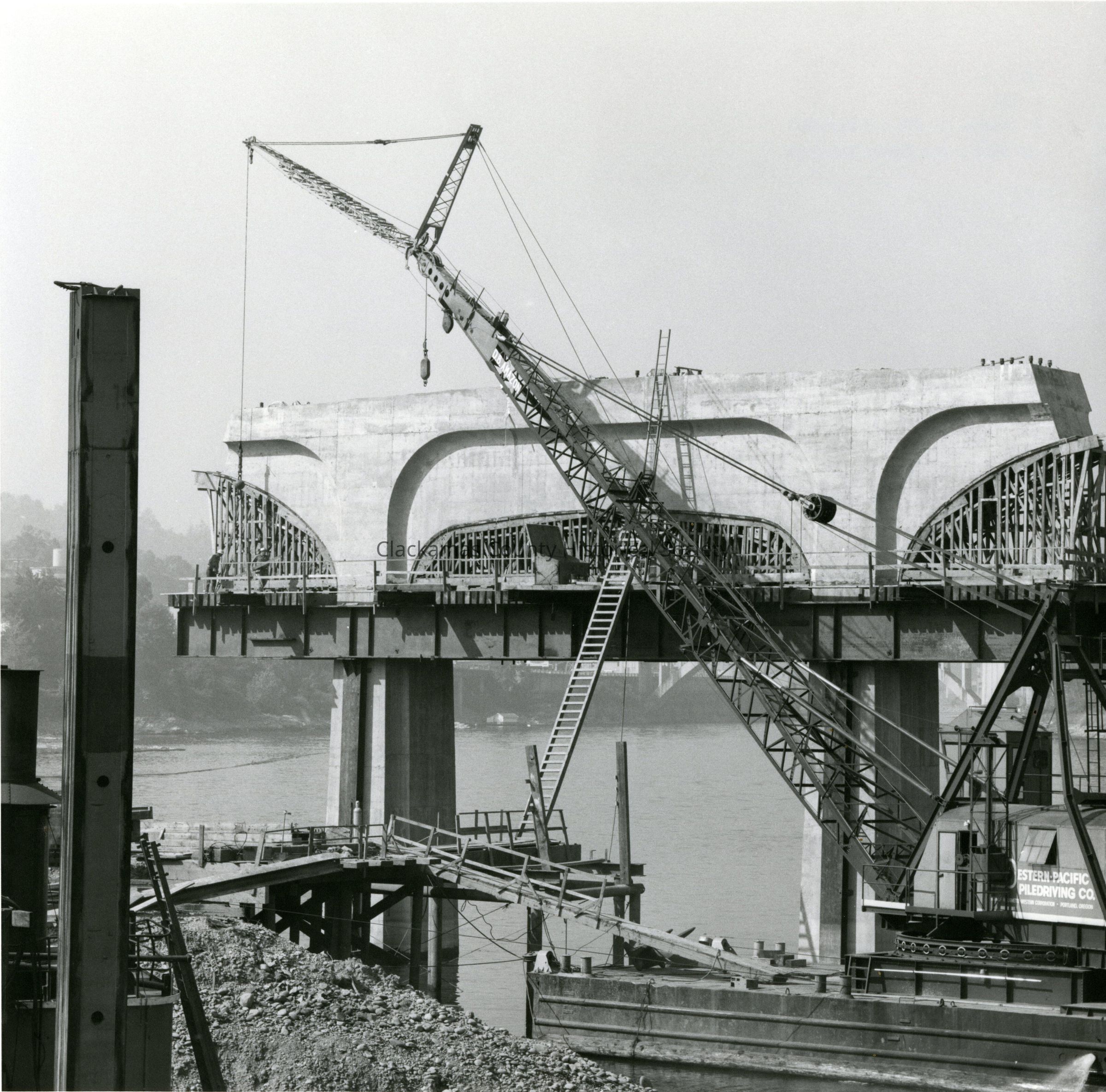 Construction Crane and Concrete, I-205 Bridge Construction near West Linn.Made/Created