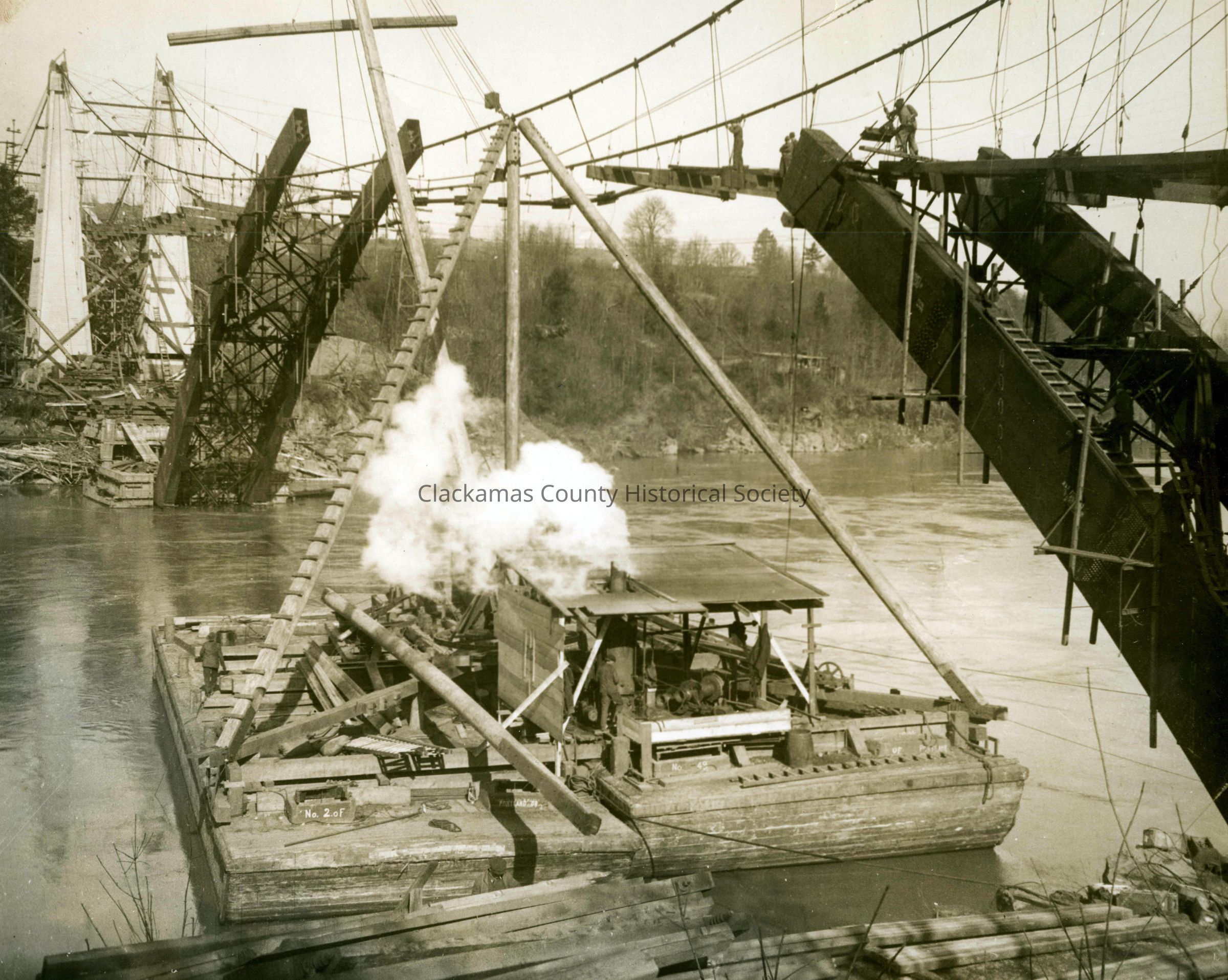 Construction of Arch Bridge at Oregon City-West Linn over Willamette River.