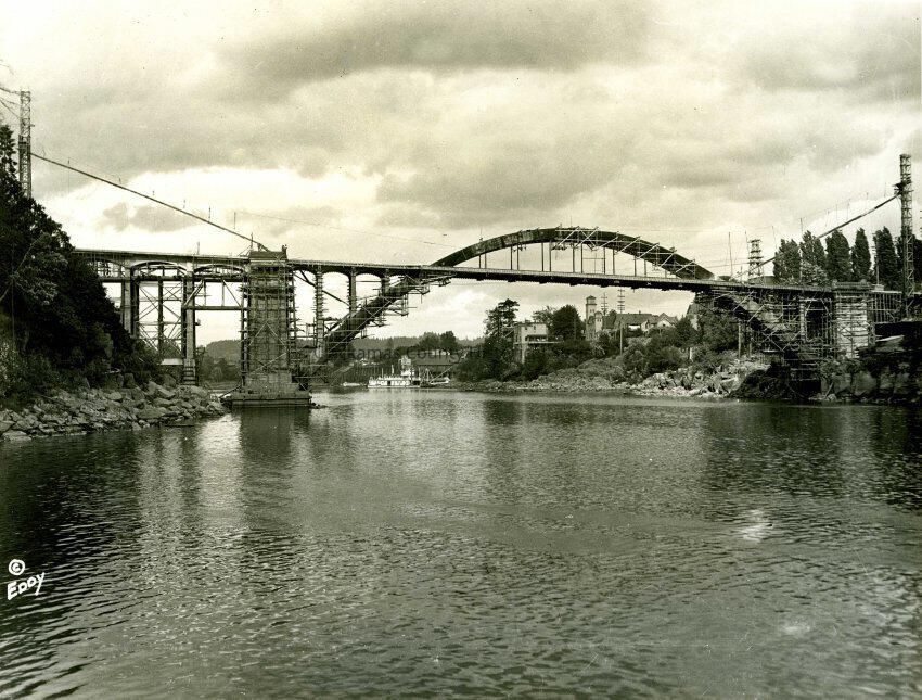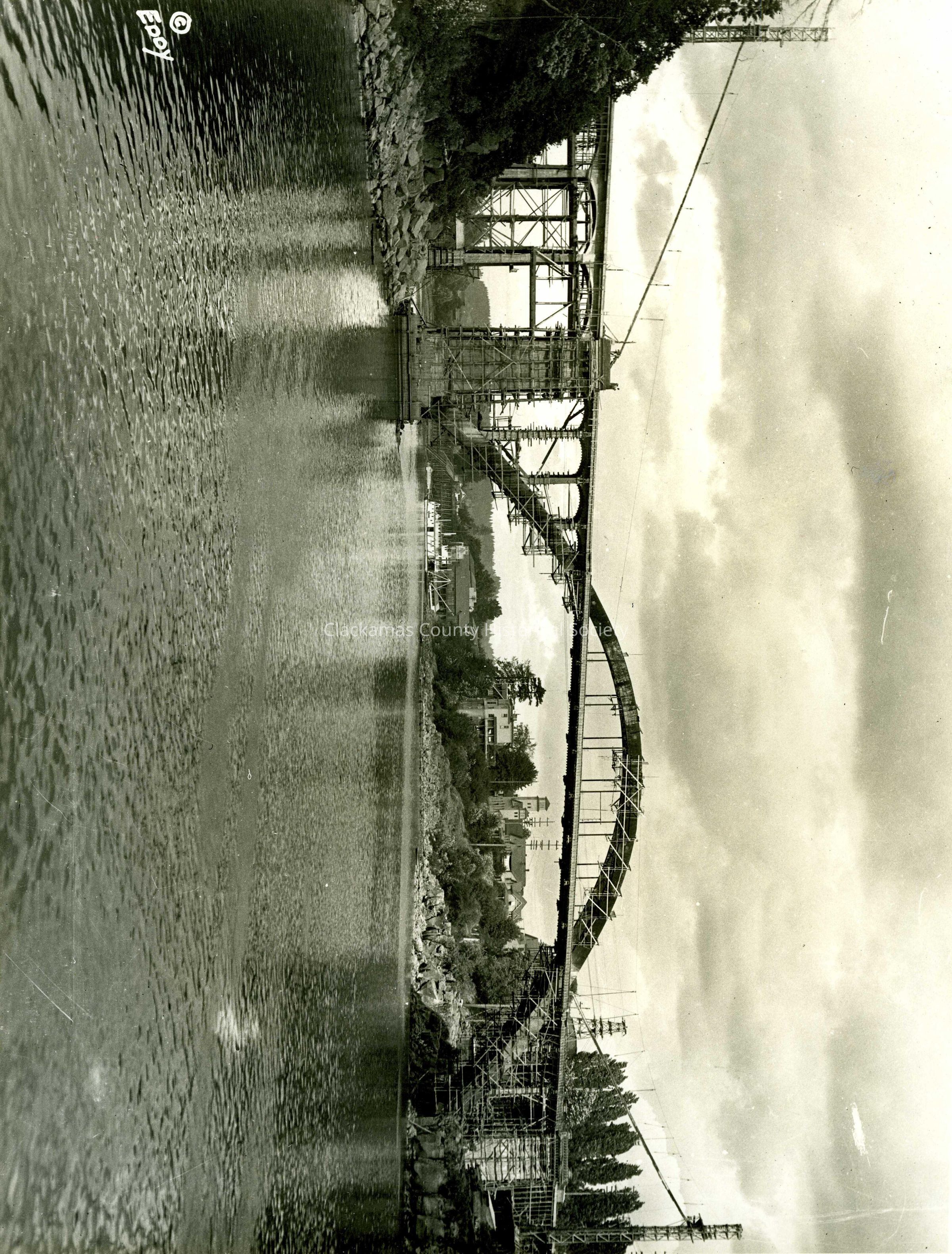 Construction of Arch Bridge at Oregon City-West Linn over Willamette River.