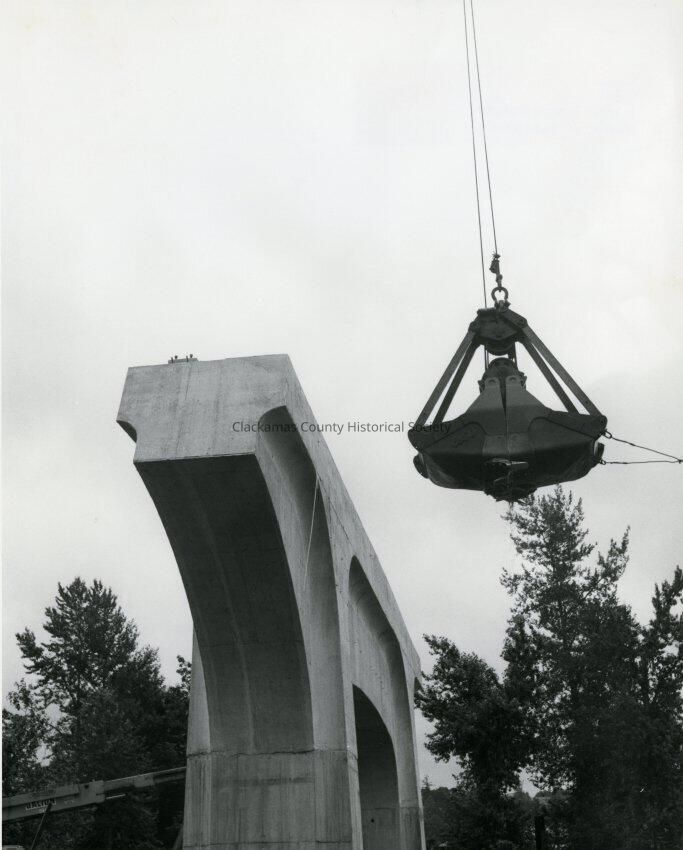 Crane bucket and concrete support. I-205 Bridge Construction near West Linn.Made/Created