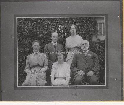 D.C. Latourette Family 1910 - DeWitt Clinton (Clint) Latourette (1856-1937), Ellen Rhoda Duniway Latourette (1855-1943), son Kenneth Scott Latourette, and daughters Ruth and Dorothy Latourette. Ellen was the younger half-sister of Abigail Scott Duniway. Their house still stands at 914 Madison Street, Oregon City (JAH 9/2022)