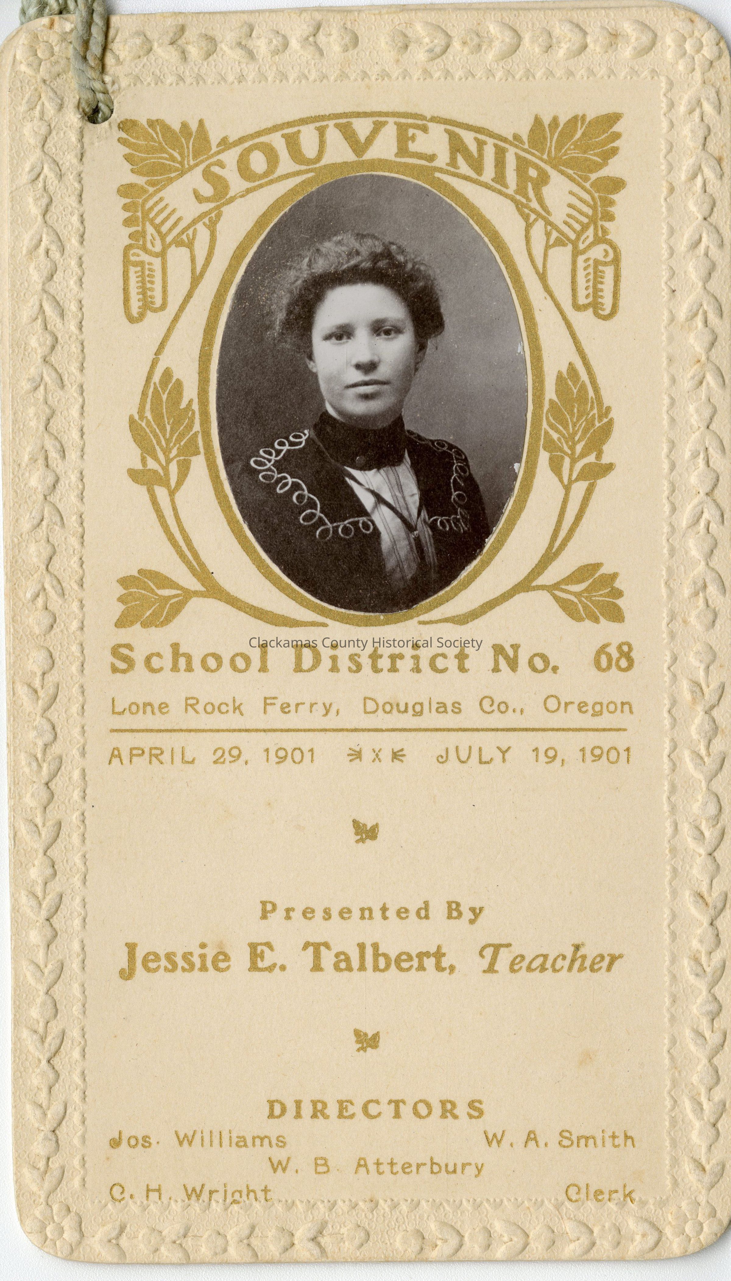 Jessie E. Talbert, teacher. School District No. 68. Lone Rock Ferry, Douglas Co., Oregon.