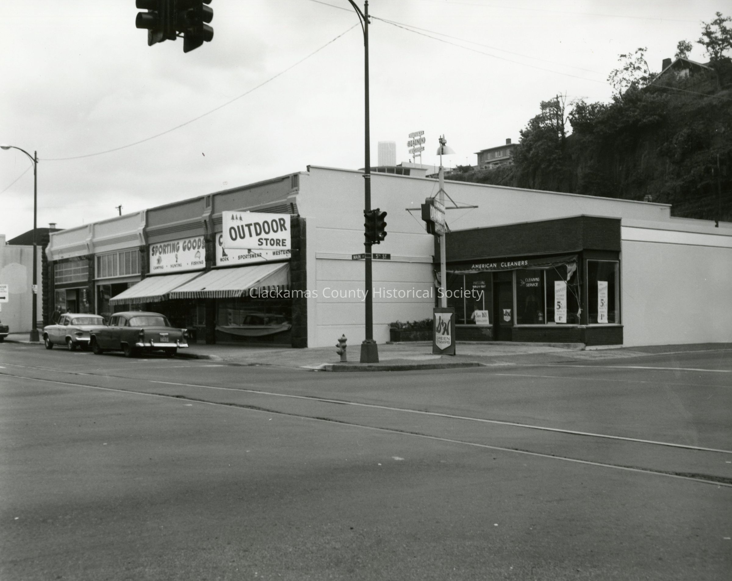 Corner of Main and McLoughlin Blvd., Oregon City. Commercial buildings. Circa mid-1960s (5th and Main Street)