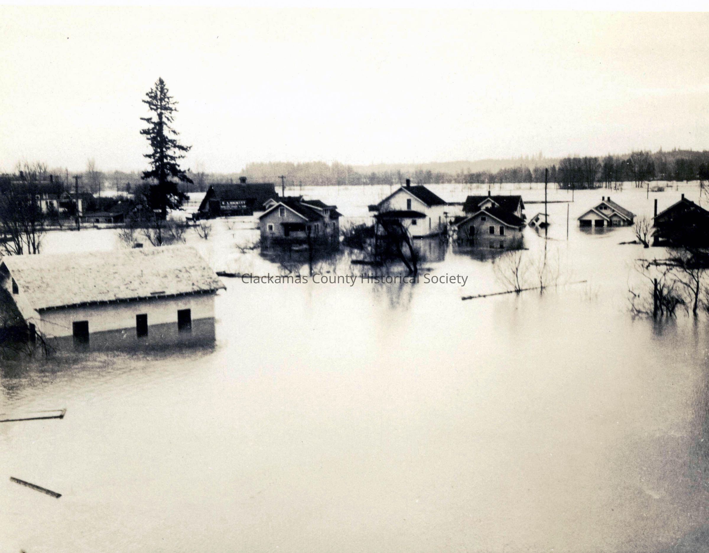 1922-1923 Flood, Looking northwest from the Buena Vista area of North Oregon City. Hackett Company in the background.Made/Created