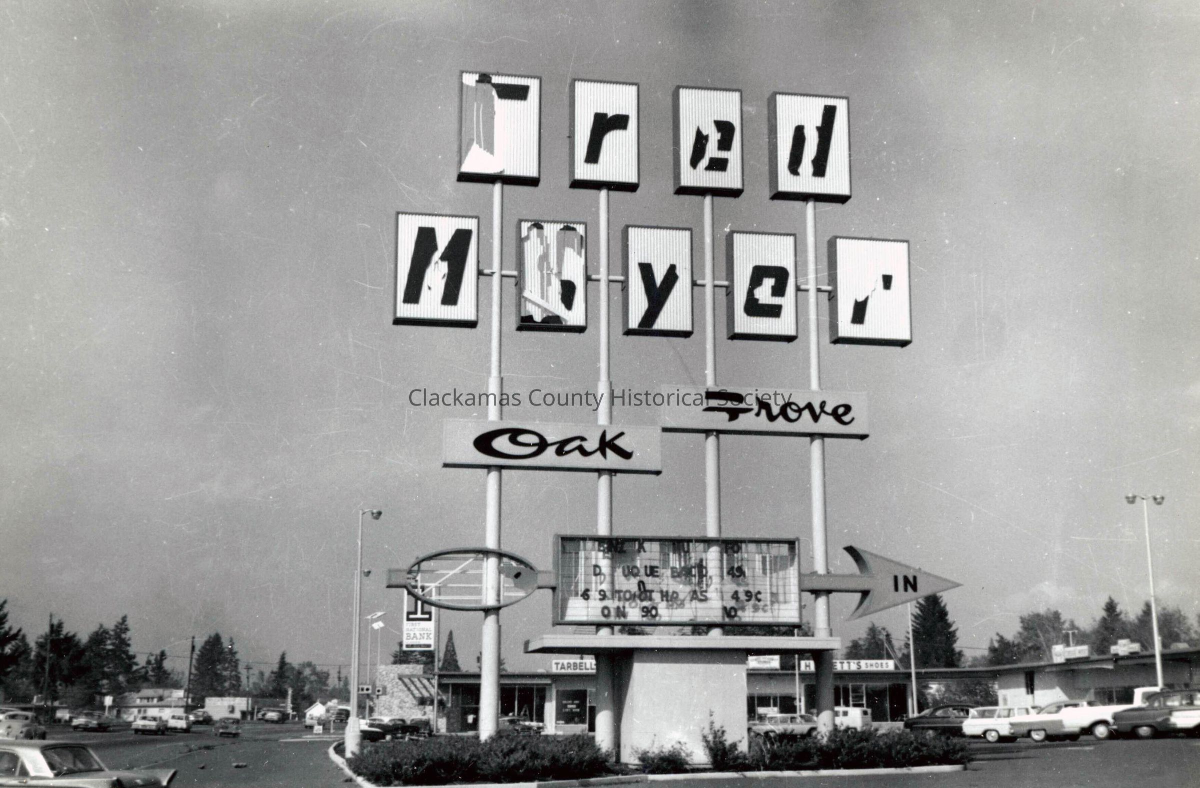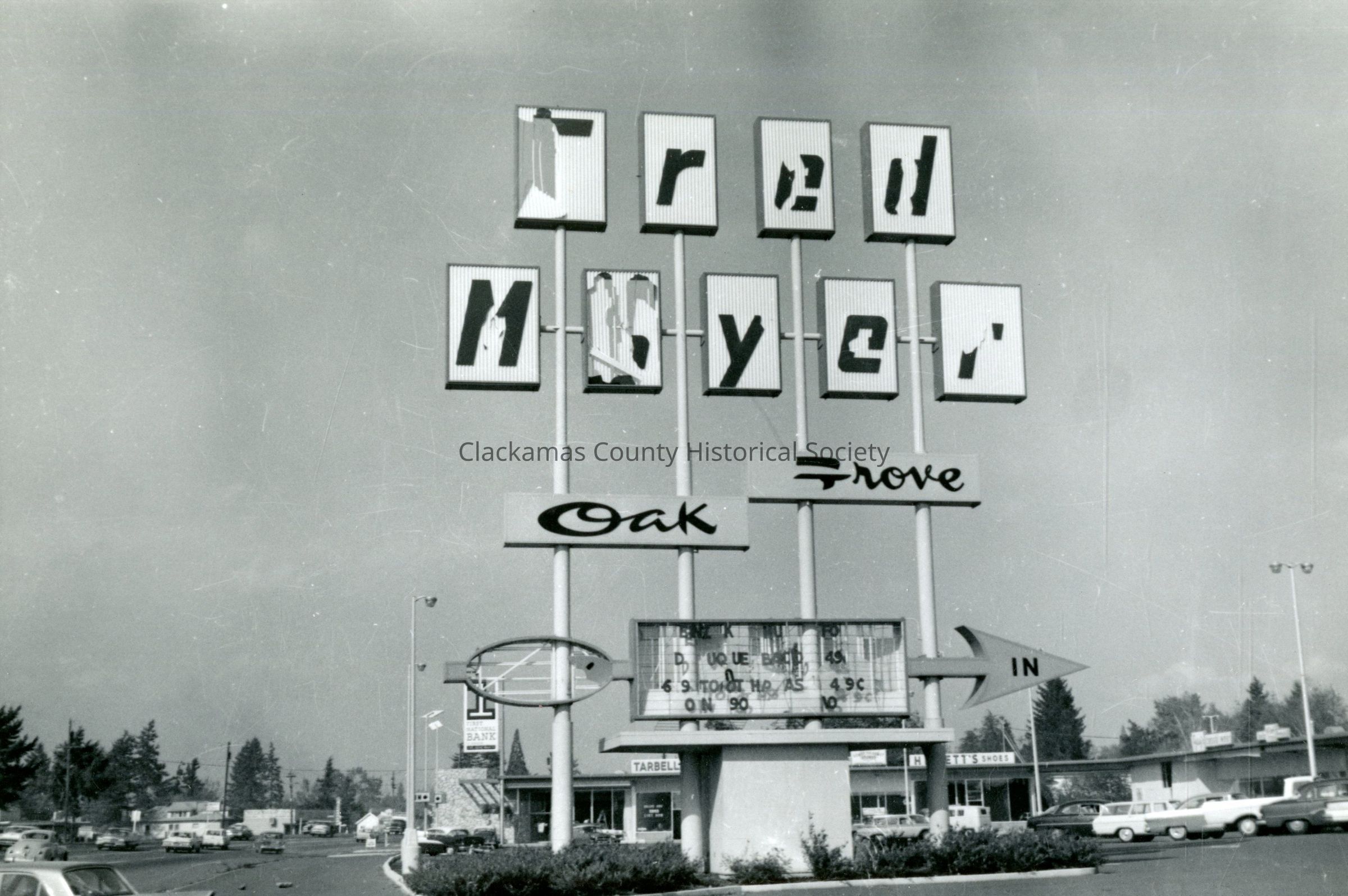 1962 Columbus Day Storm, Damage to Fred Meyers Sign in Oak Grove.Entry/Object ID