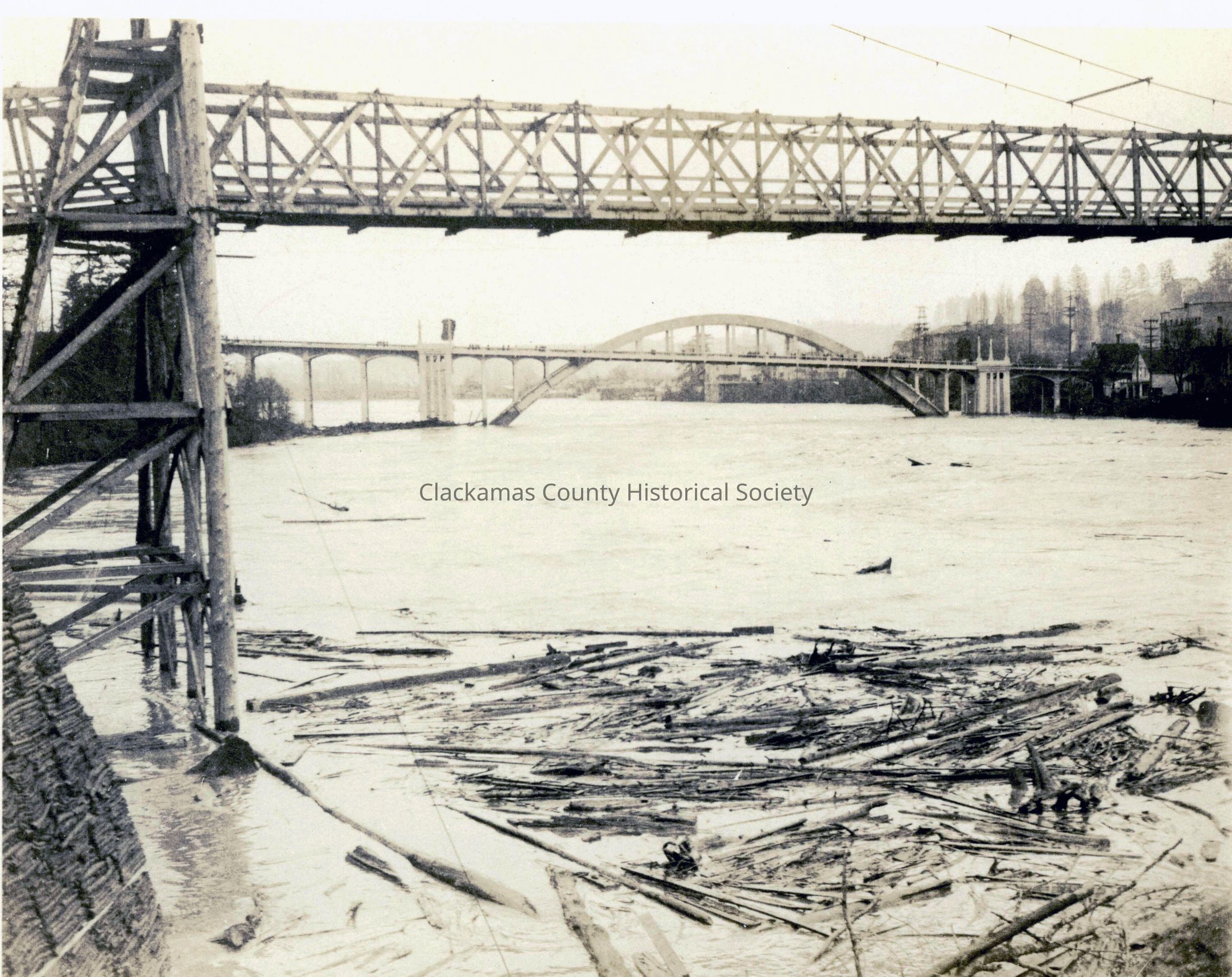 1922 Flood - Pedestrian Suspension and Arch Bridges - From Oregon CityEntry/Object ID