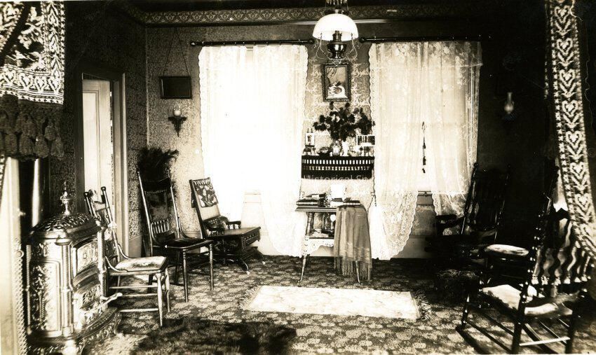 Steven's house, west end of parlor. 1895. 7th and Washington St. Interior.