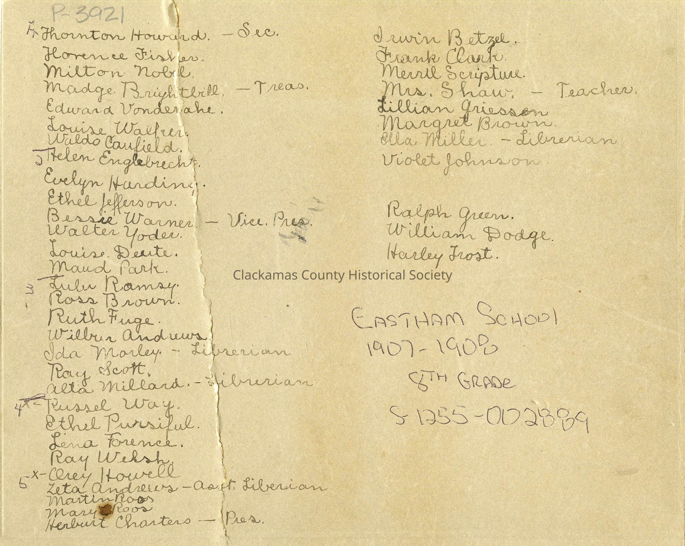 Eastham School Students 1908 - 8th Grade - Oregon CityEntry/Object ID