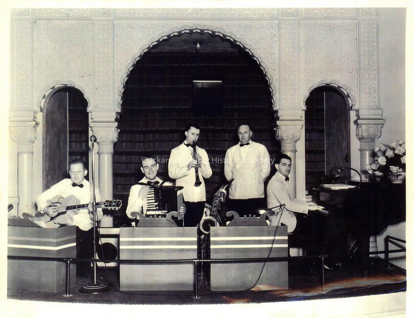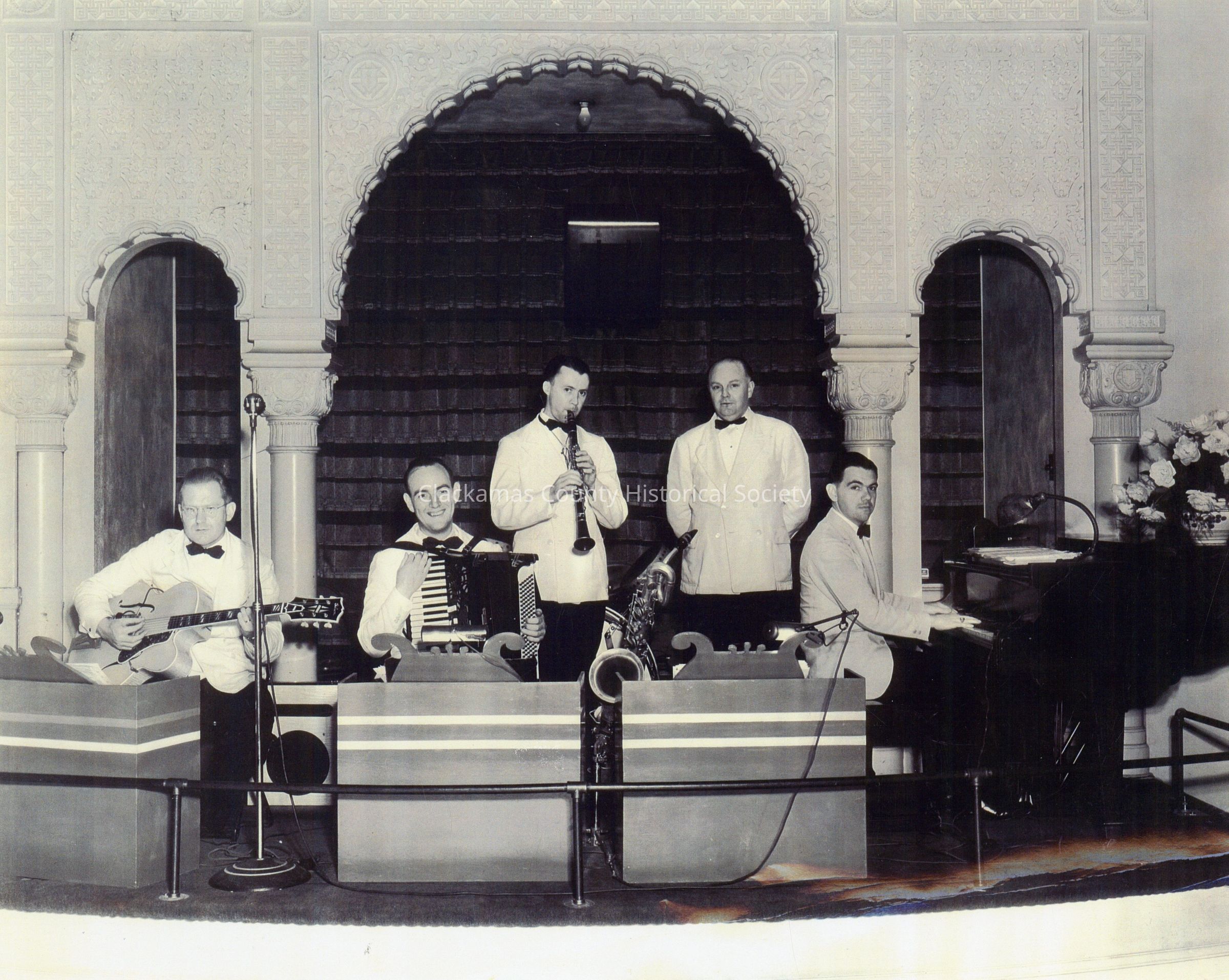 Eddie Burke"s Band at the Aero Club. Marcellus Martin on accordian. Muscians on stage.Made/Created