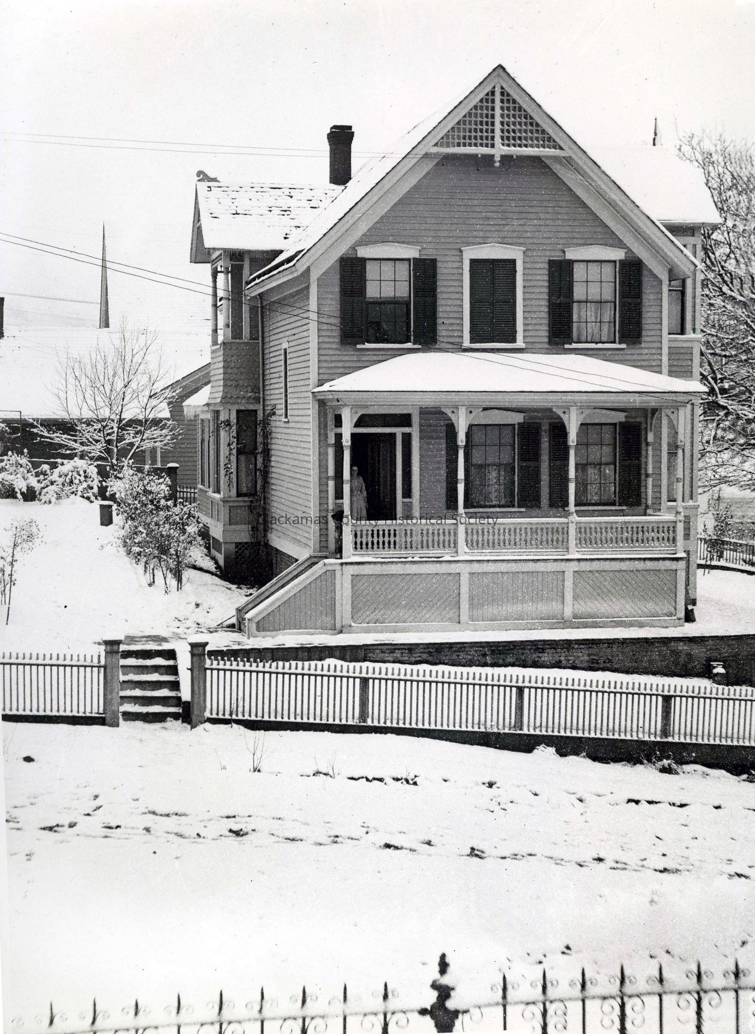 E.G. Caufield Residence, on 8th and Water Street, after snowstorm. The front elevation faced 8th.
