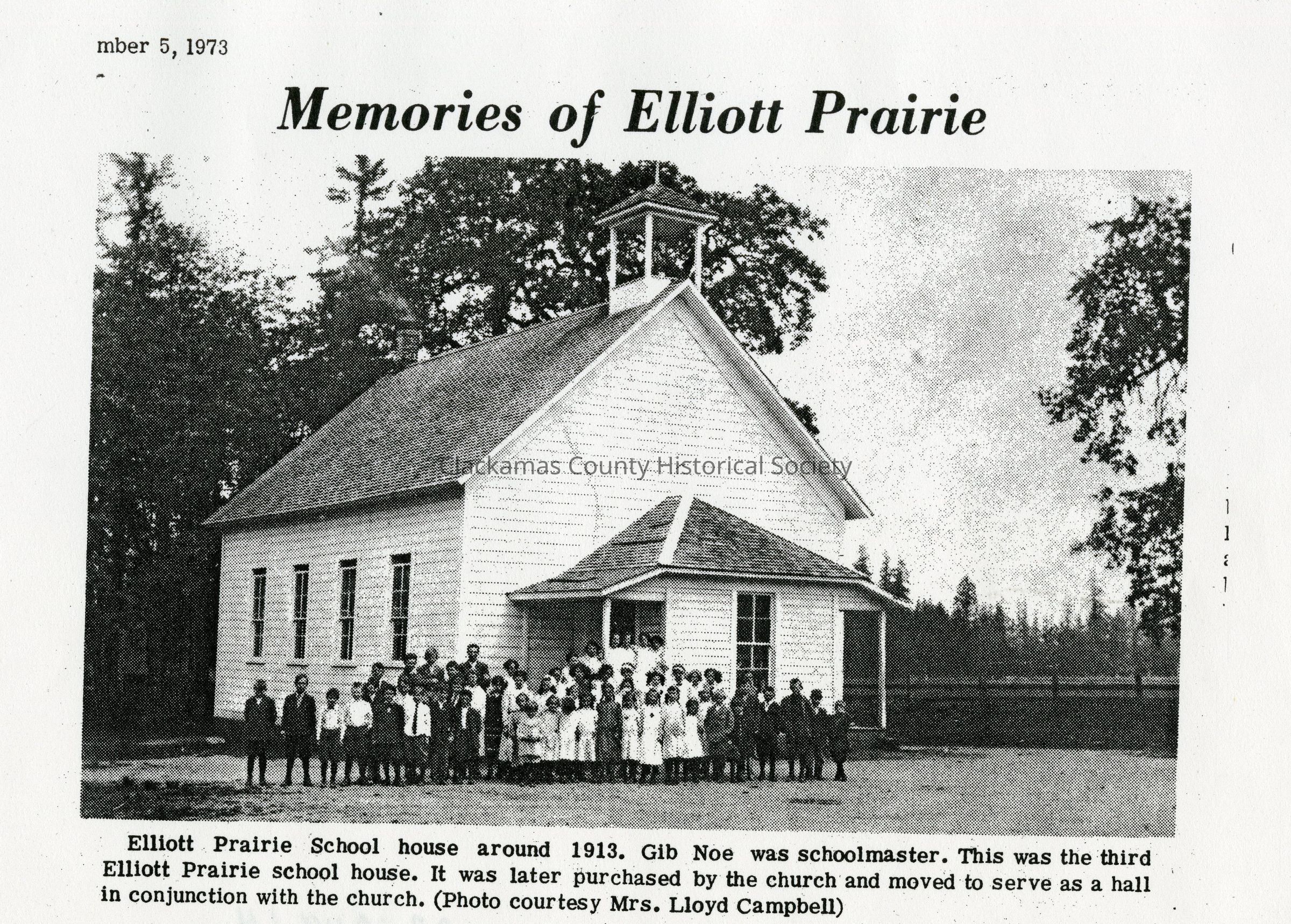 Copy of 1973 newspaper clipping picturing the Elliot Prairie School, around 1913.