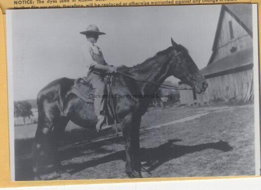 Ernest Roethe & Horse side of the Roethe barn 1920 River Road at Roethe Road Gift of Dora Roethe