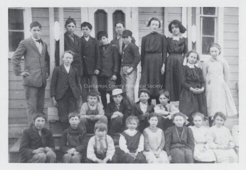 Evergreen School 1908 or 1909 South of Silverton Oregon - Highway 213 Class of students