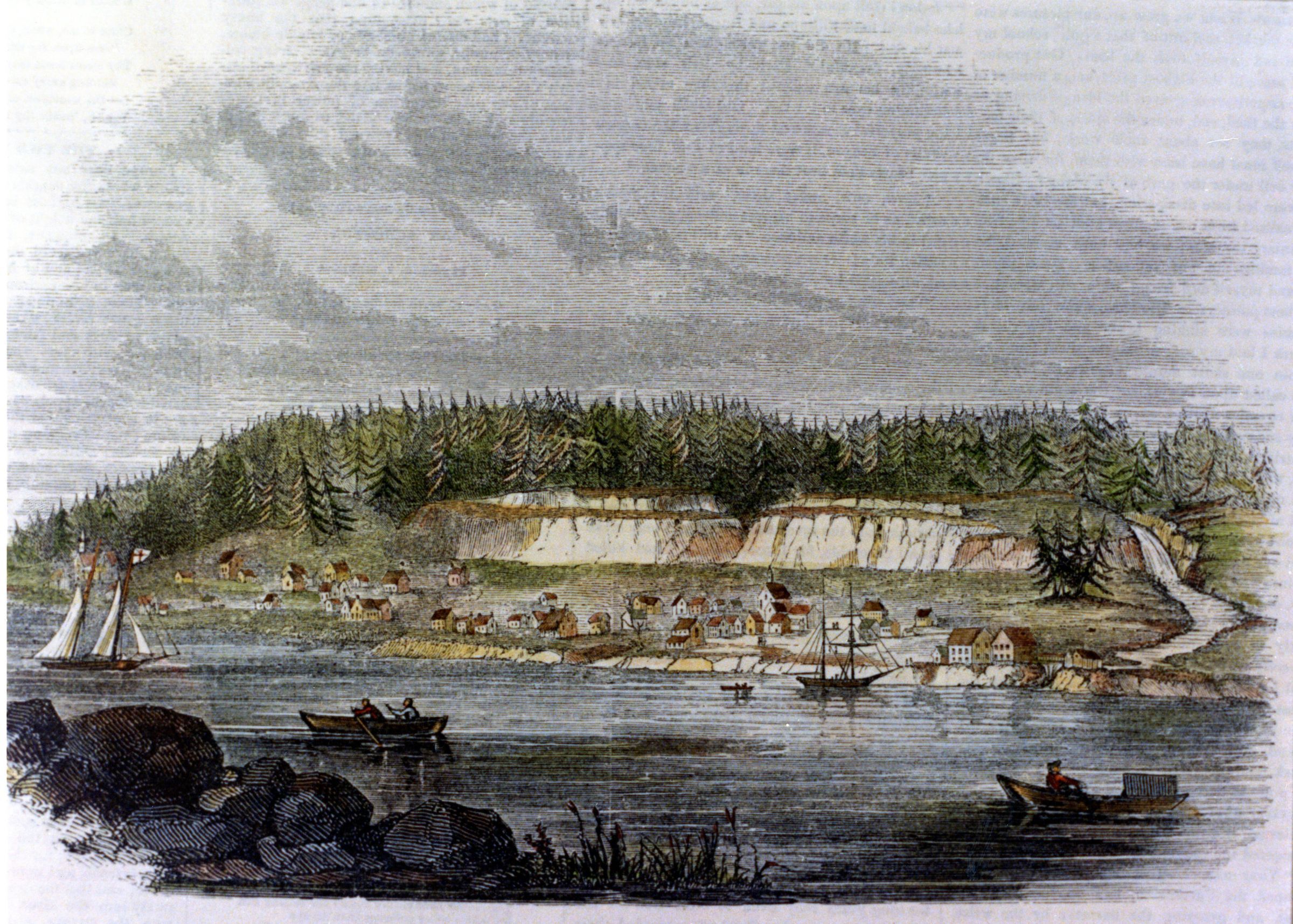 Oregon City 1845 - Lithograph of Oregon City from West LinnEntry/Object ID