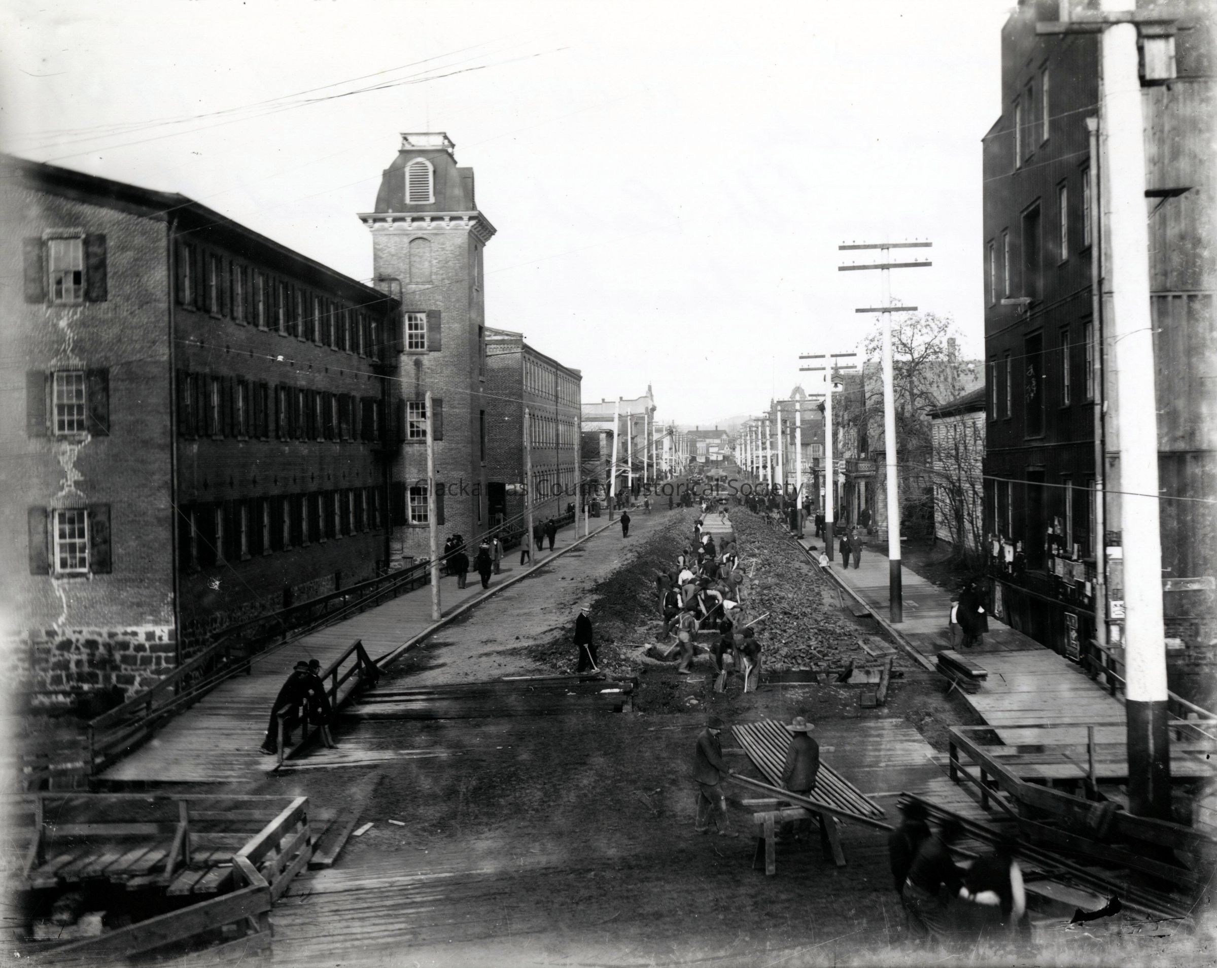 Main Street Looking East from 2nd Street, Laying of Streetcar Track.Made/Created