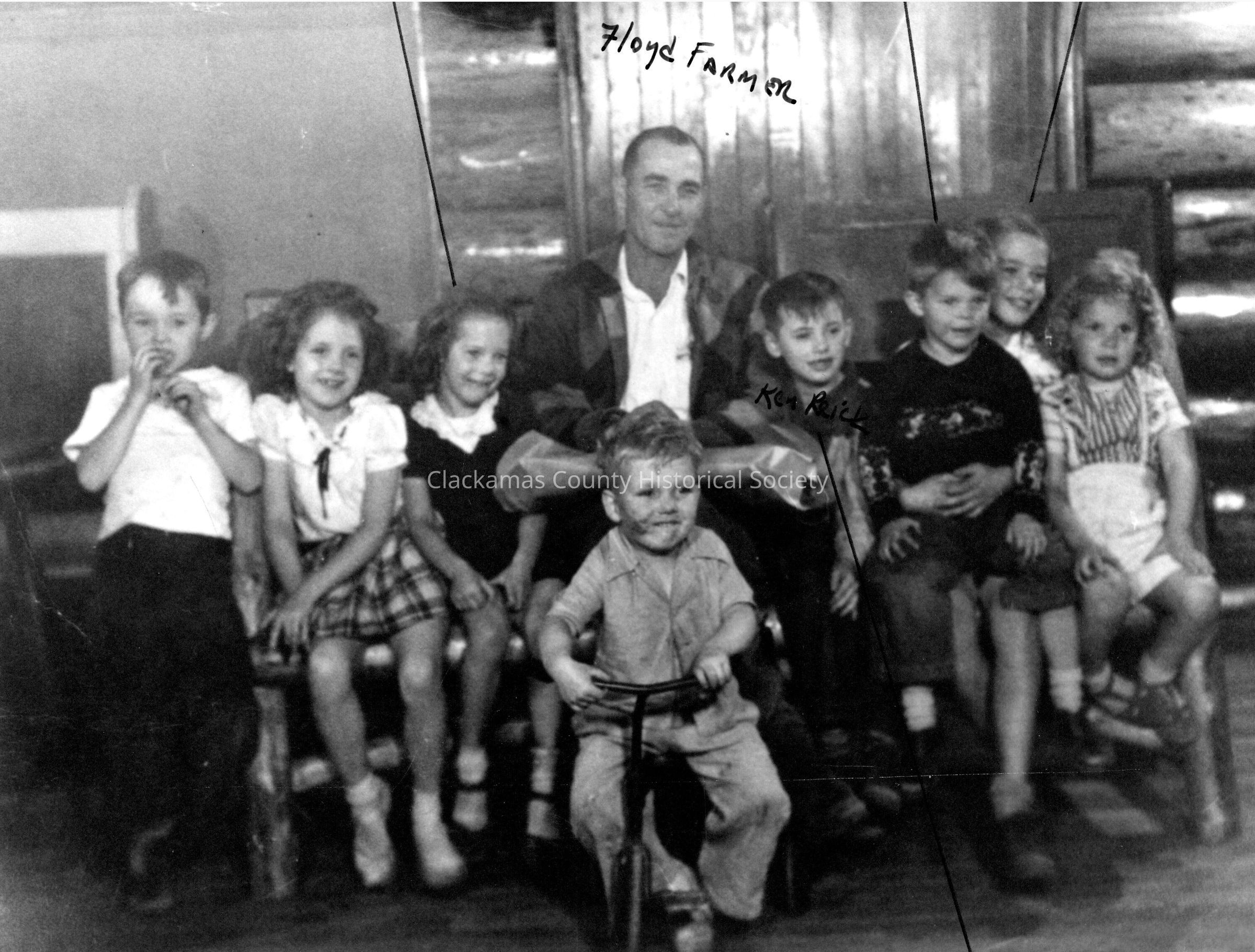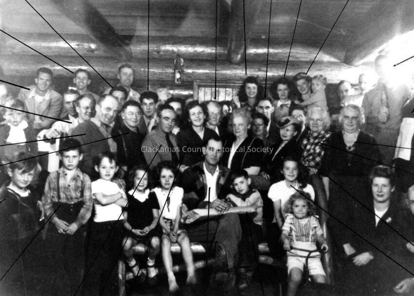 Family groups and children, Log Lodge, Rhododendron, OR, 1948.Entry/Object ID
