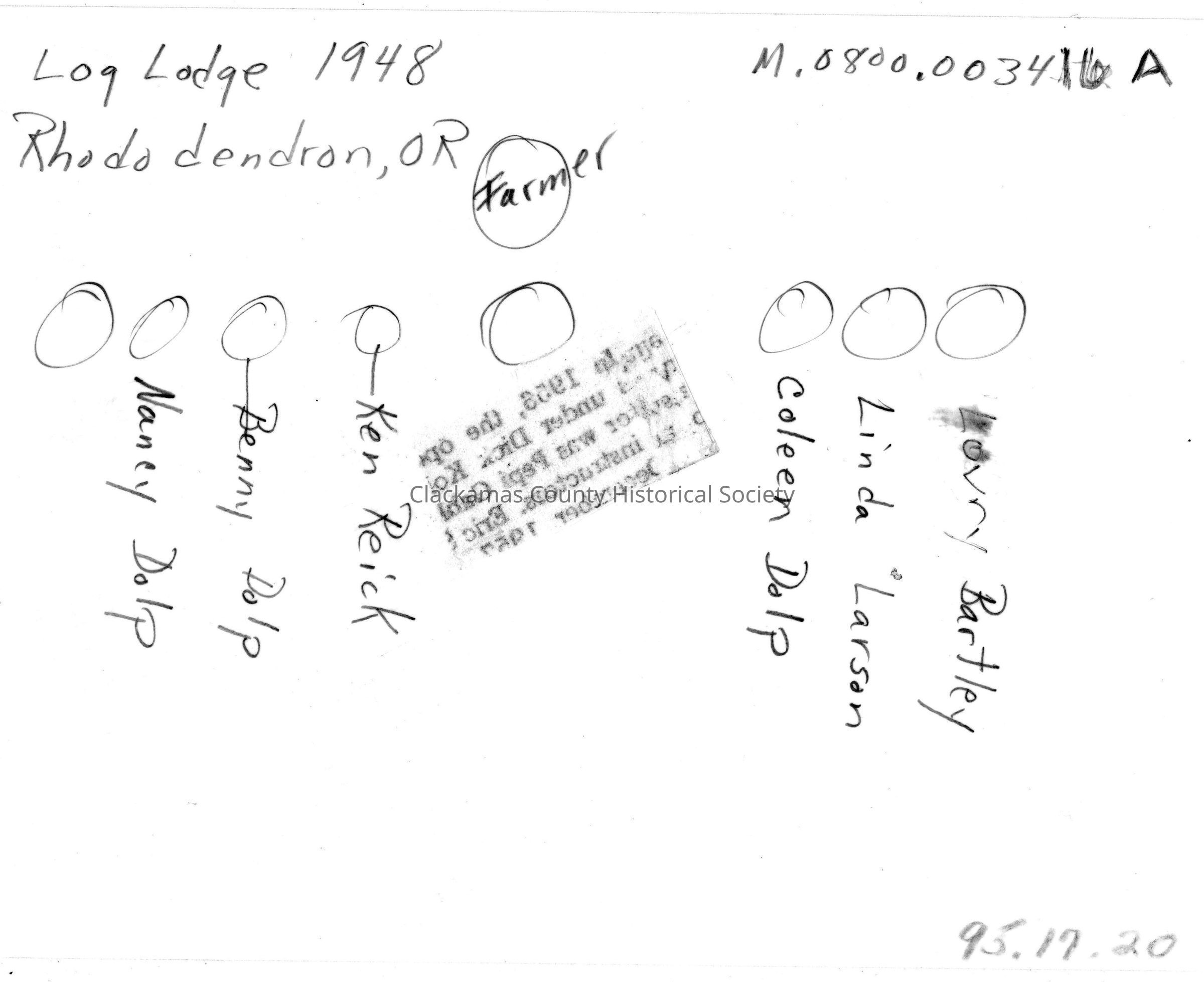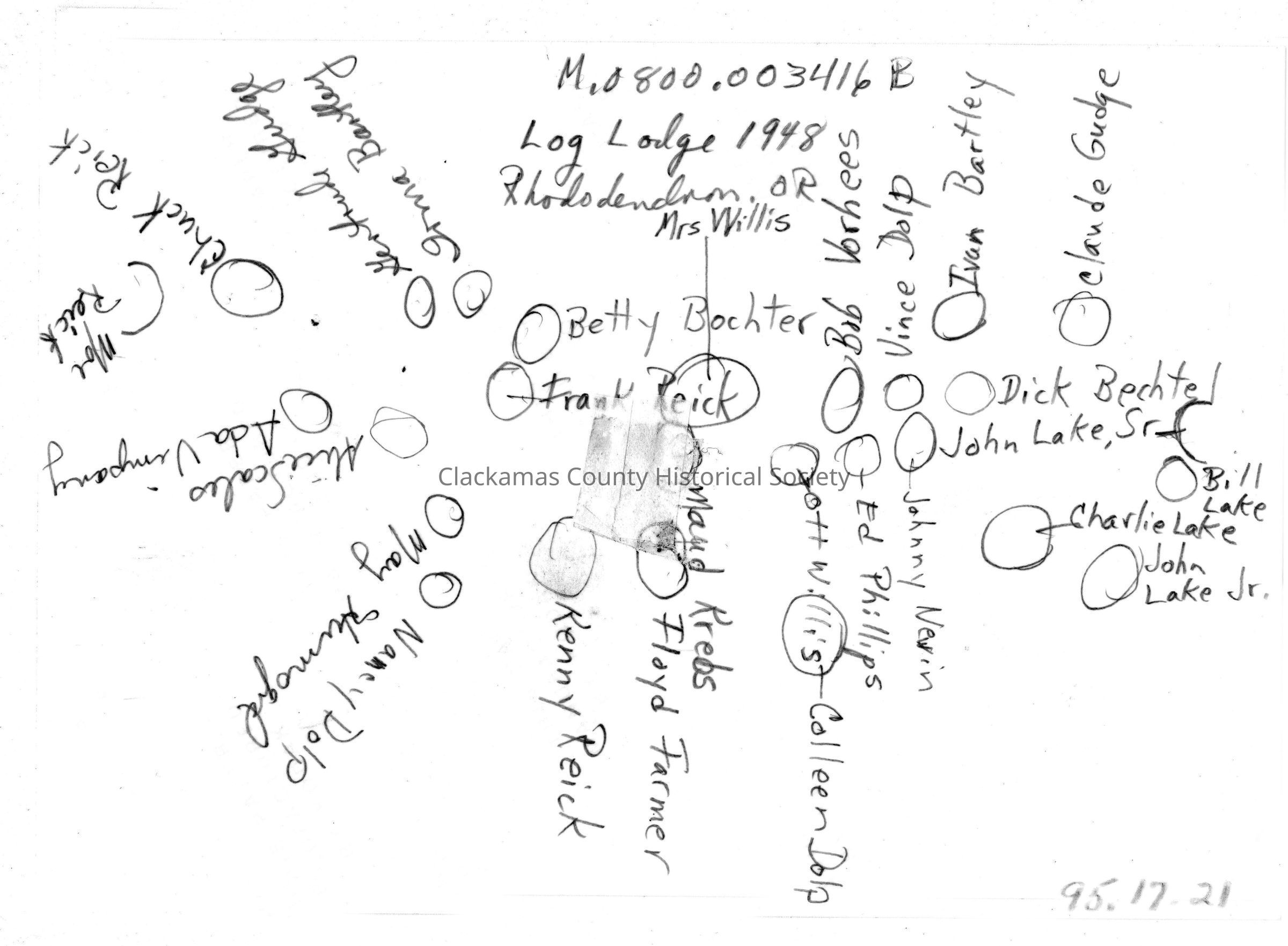 Family groups and children, Log Lodge, Rhododendron, OR, 1948. Names of people in photo on back on photos.Made/Created