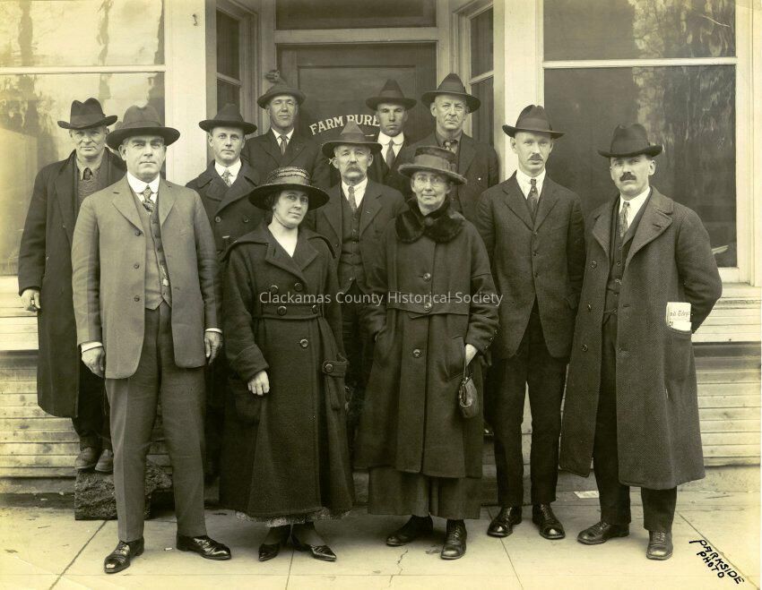 Farm Bureau, Oregon City, Oregon. Photo shows 11 employees in front of the Farm Bureau's office.Made/Created
