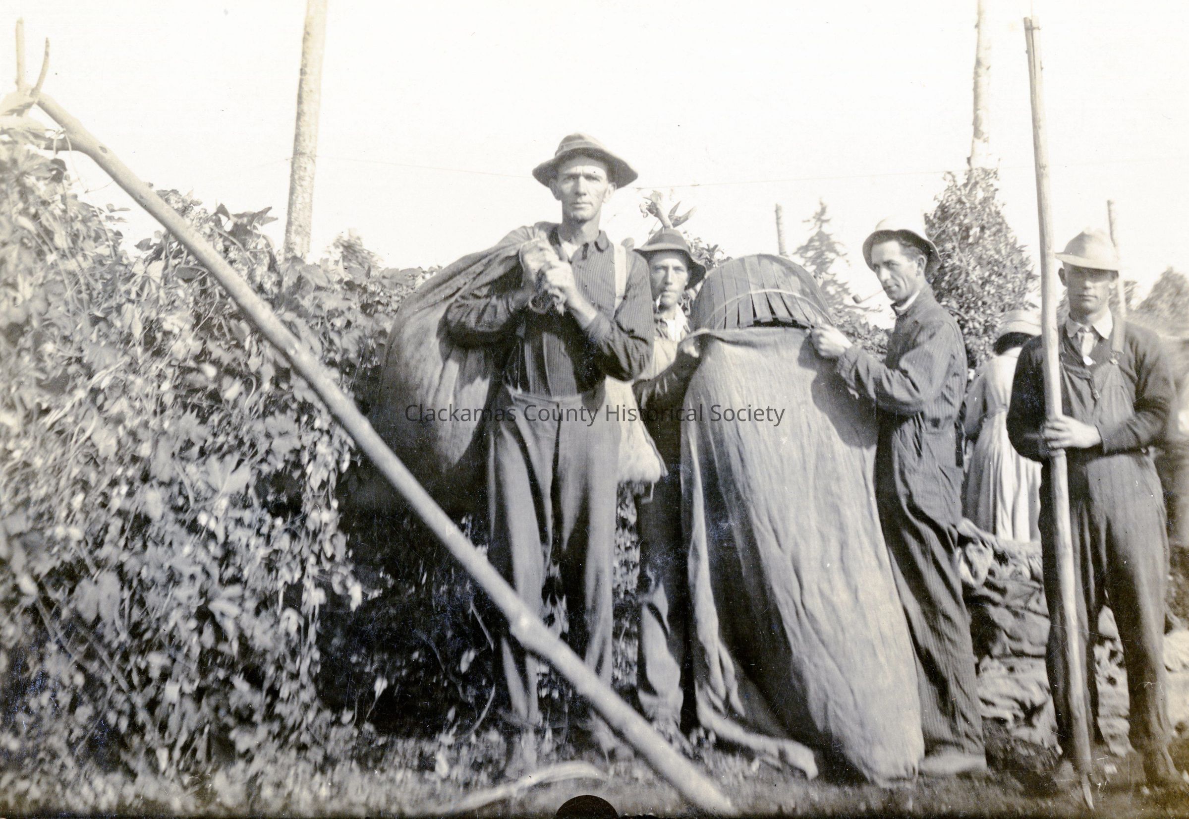 Farmers Harvesting Crop - Perhaps Hops (similar bags were used in photo P-42 - dlking 10/17/2023) No location or Date - A-0025-000157