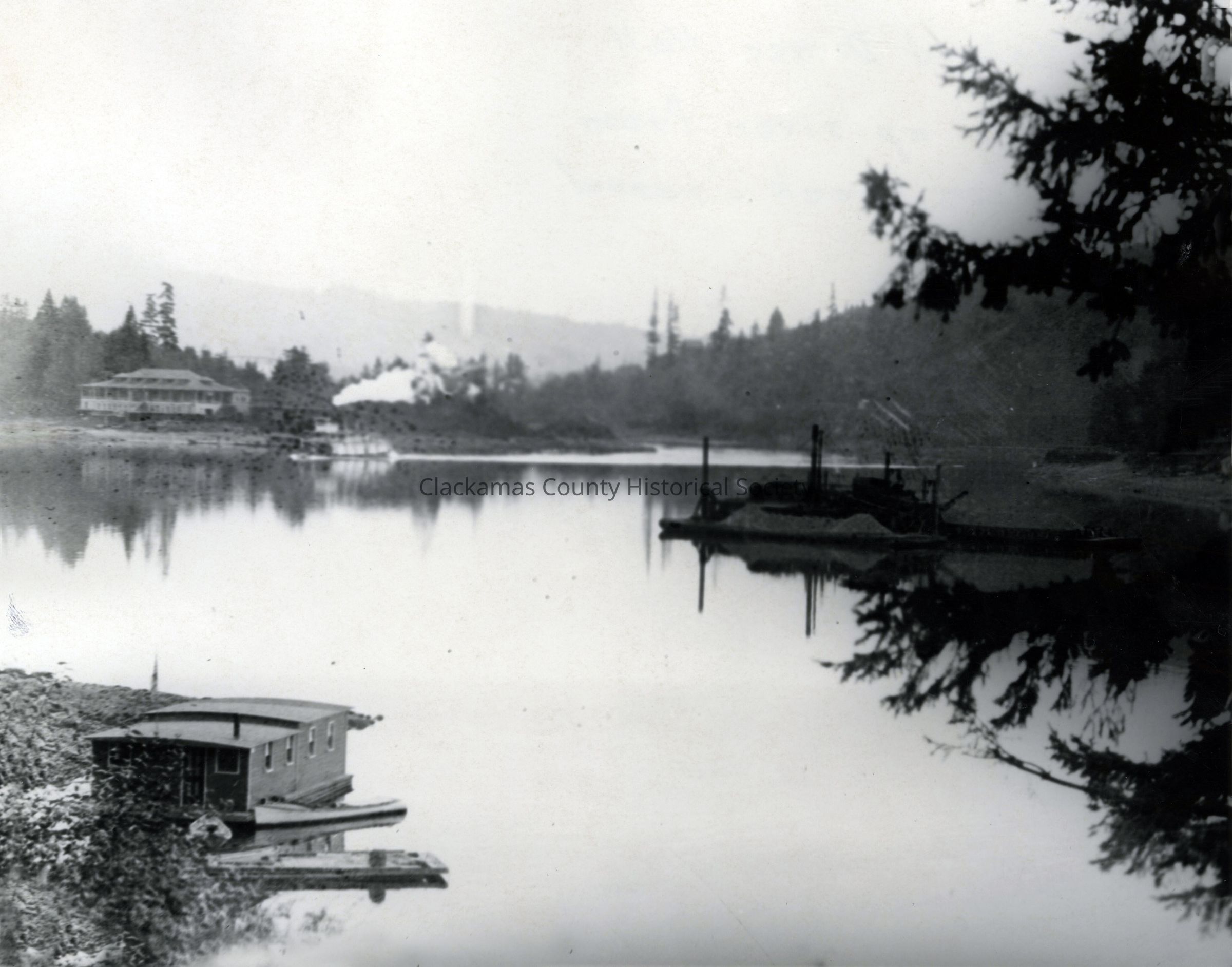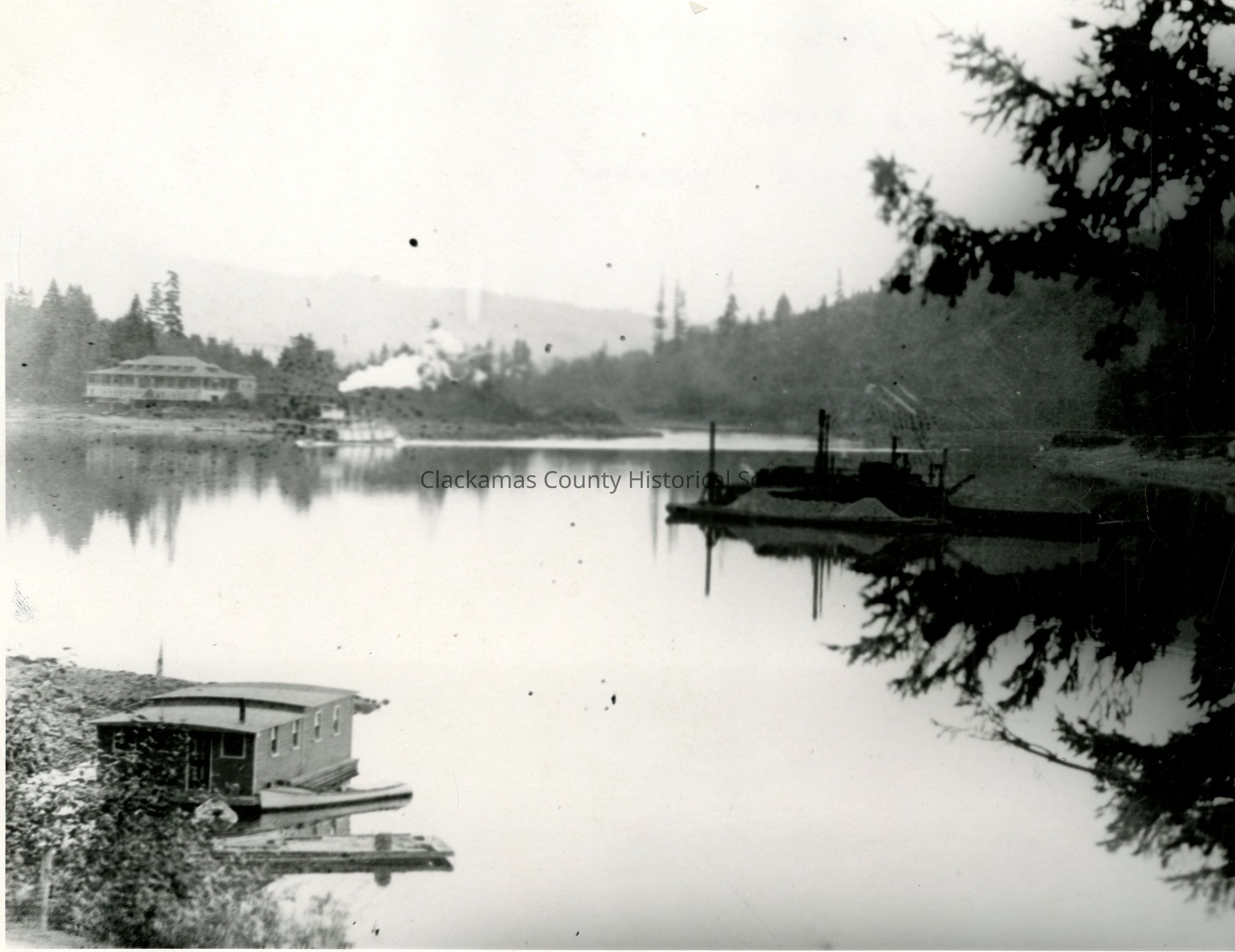 Milwaukie's Rock Island Dance Hall. Looking up river from Johnson Creek Trestle. (aka Elk Rock Island)