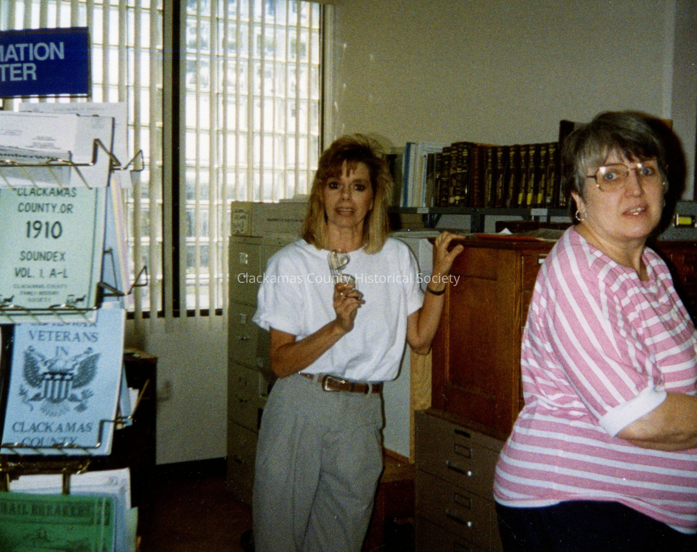 At Clackamas County Historical Society (CCHS) CCFHS Volunteers - Sandy McGuire and Dian Gustavson