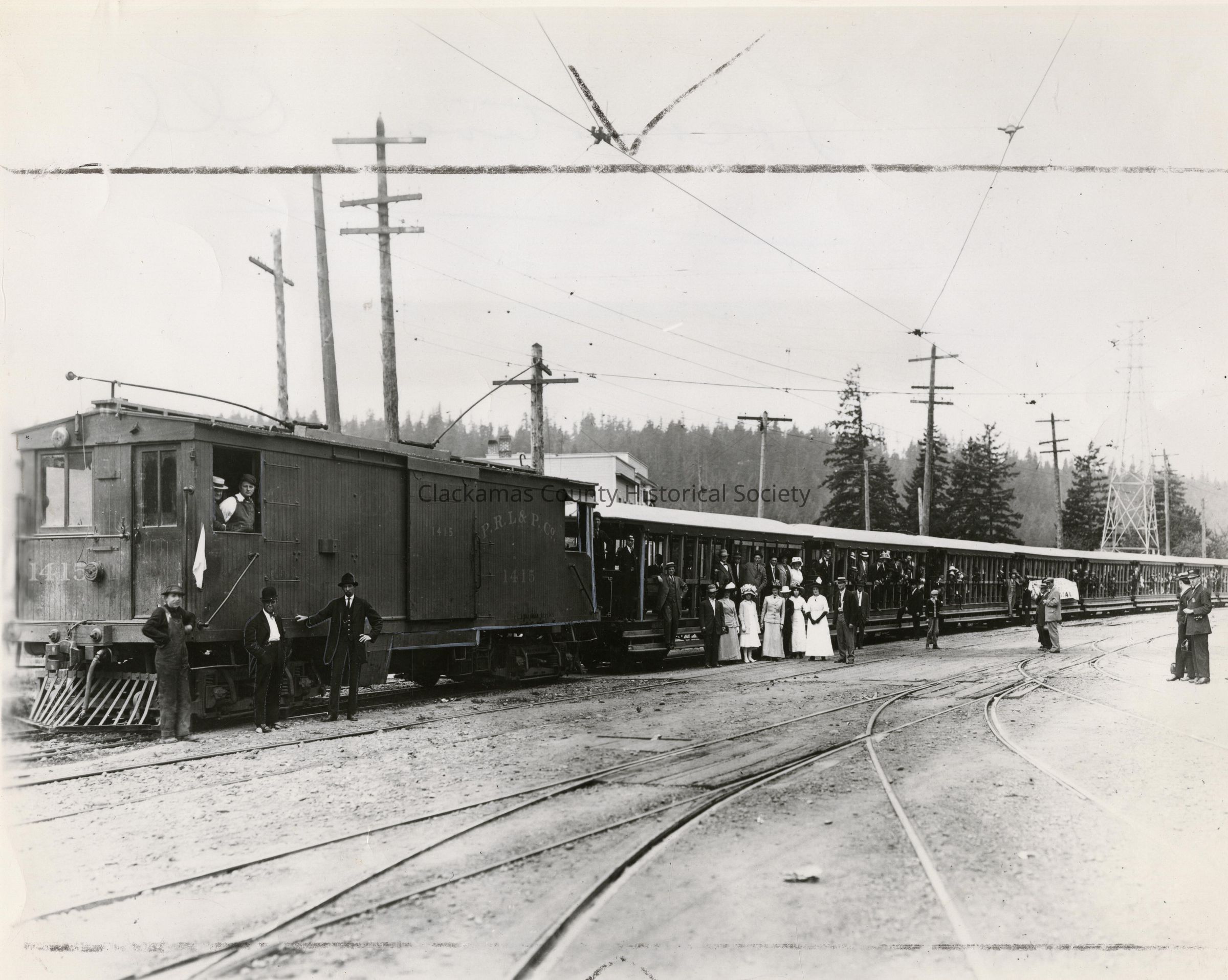 On Back of Photo - First electric freight locomotives operating on Portland's interurban lines were built from regular small box cars. This one was built by the Oregon Water Power and Railway Company in 1904.