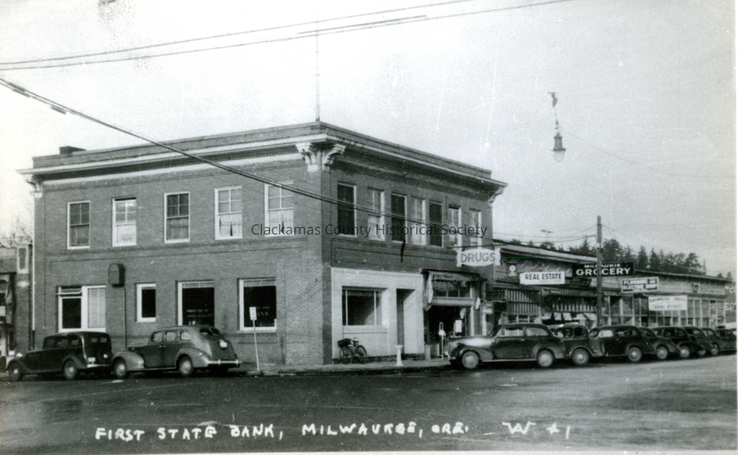 First State Bank of Milwaukie in the late 1920s, on the corner of Main and Monroe, across the street from the later bank.Made/Created