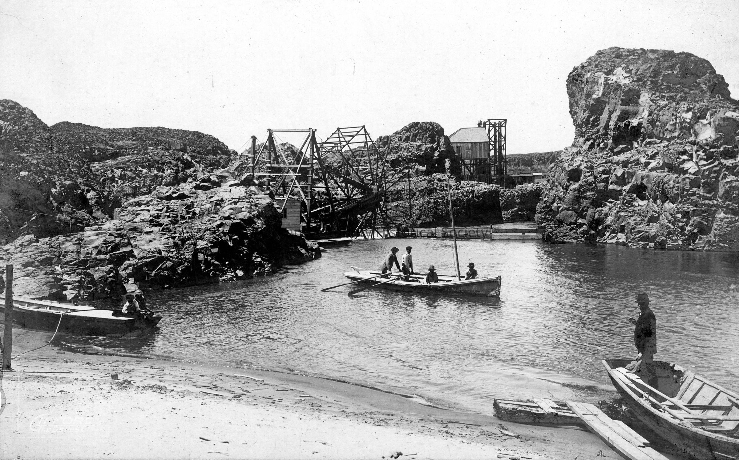 Fishwheel No. 5, The Dalles-Celilo area on Columbia River. Documented in Fishwheels of the Columbia, by Ivan Donaldson and Fredrick K. Cramer. Built in 1887 and continued to be used until 1927 when stopped by court order.Made/Created