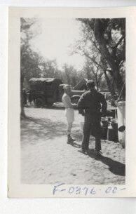 Fort Lewis - Man in uniform and one in his underware army truck Ressberger Collection P1025.000185