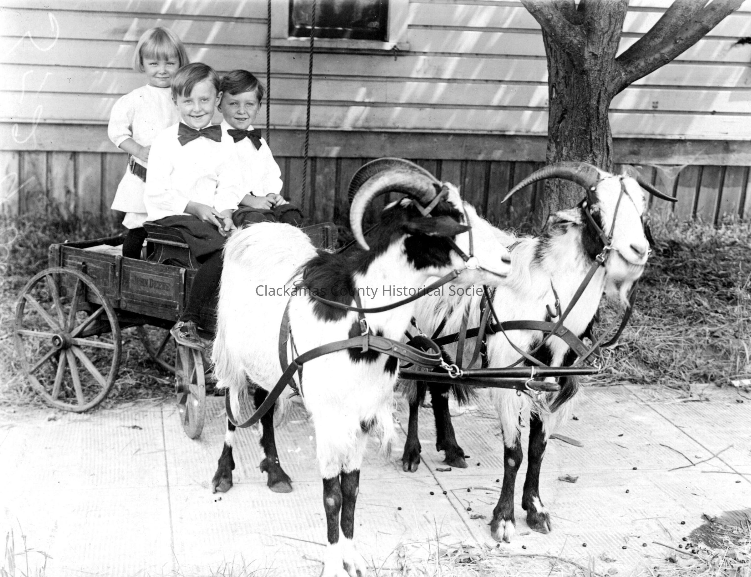 Fosberg Children with Goat Cart. (L_R): 1) Rhea, age 4; 2) George, age 6; and 3) Bobby, age 2.