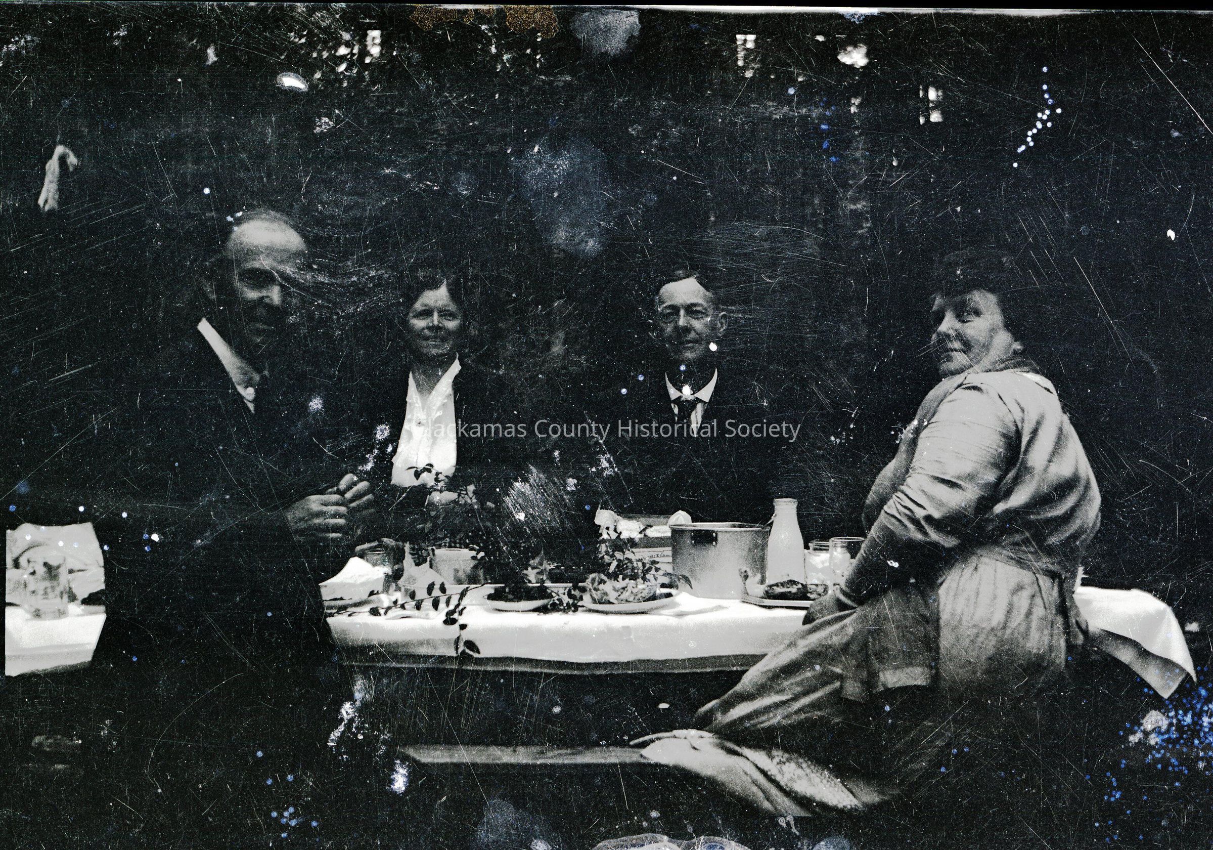 Four People at Picnic Table (Camp Adams). One woman is the same person as in previous photo.Made/Created