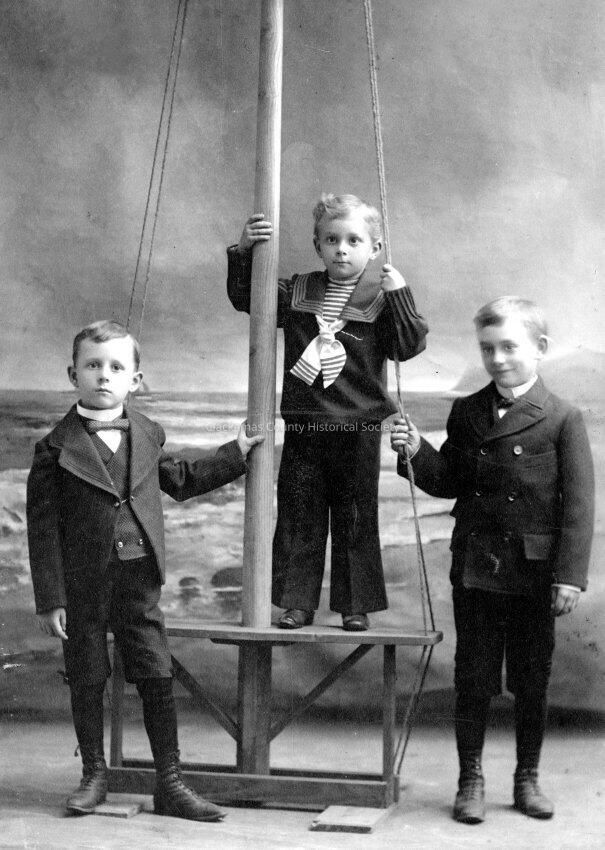 Two photos: 1A) Frank Busch, Sr. as an adult and 2B) Photo of (L-R) John, Ed and Frank Busch as boys.Made/Created