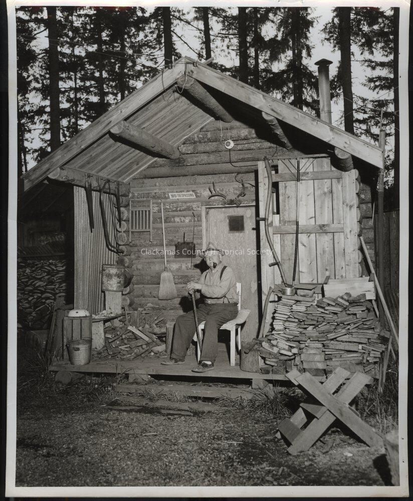 Frank Ott - Sept-1965 and his "present log cabin home." Rte #1 B# 376 , Clackamas, Ore