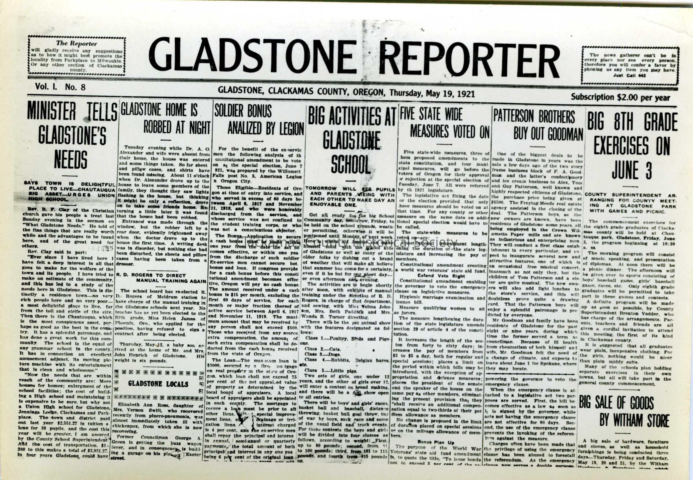 Front Page of Gladstone Reporter, Thursday, May 19, 1921Entry/Object ID