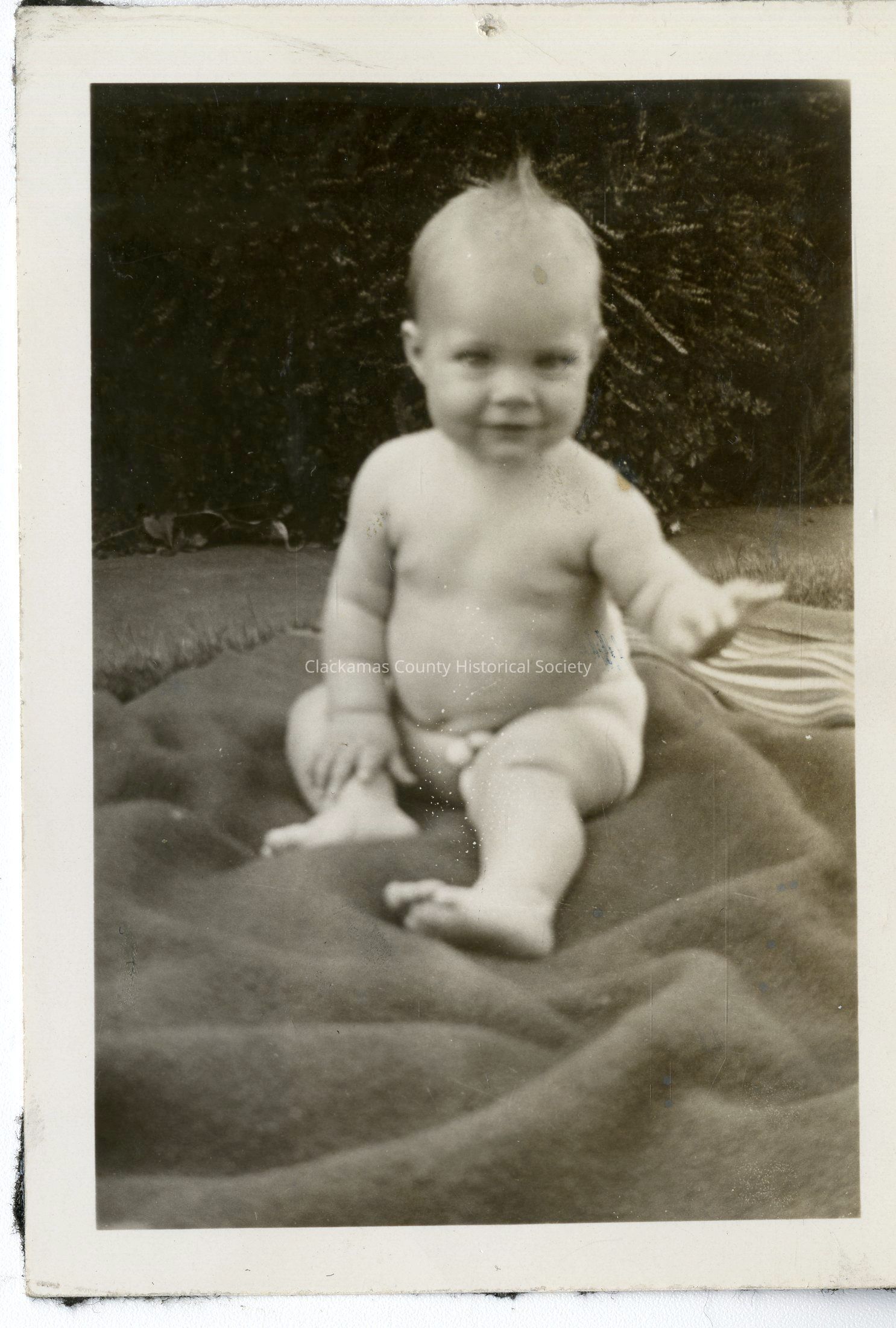 Baby Judy Ann Gallagher sitting on a blanket.