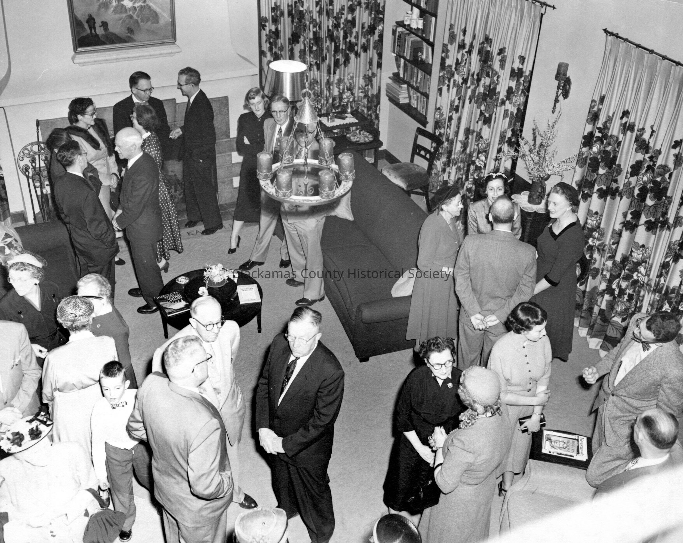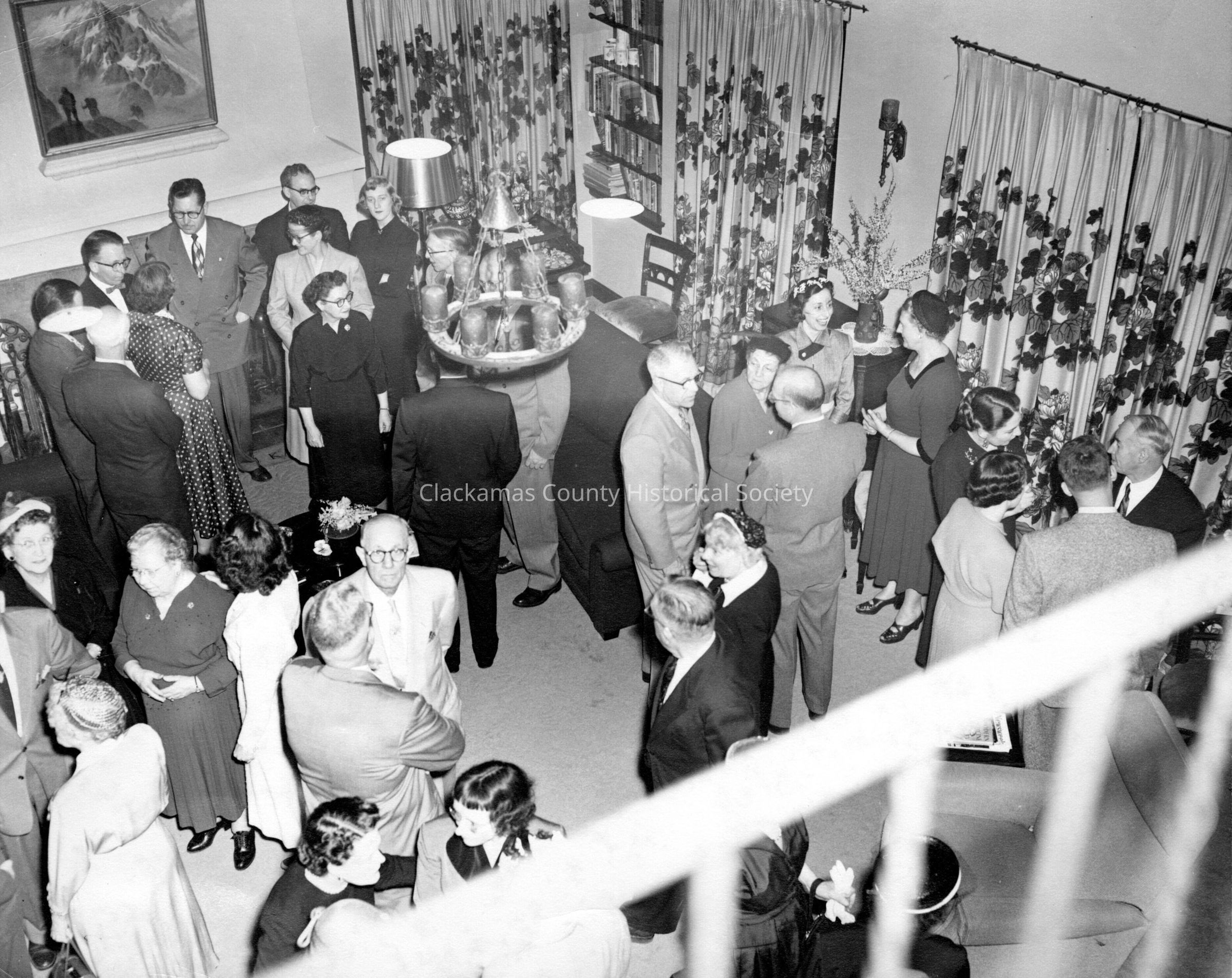 Gathering at Dr. Lathrop's Home. Jefferson Street, Oregon City. 2 photos. Names listed on back of the 2 photos include, Bill Foster, Alta Roake, Albert Roake, Paul Biggs, John Collie,Walter Buse, Mrs. Buse, Margery Lathrop, Eunice Biggs and Mertie Stevens. Exact I.D.s are difficult to ascertain. P-3014 and P-3015Made/Created