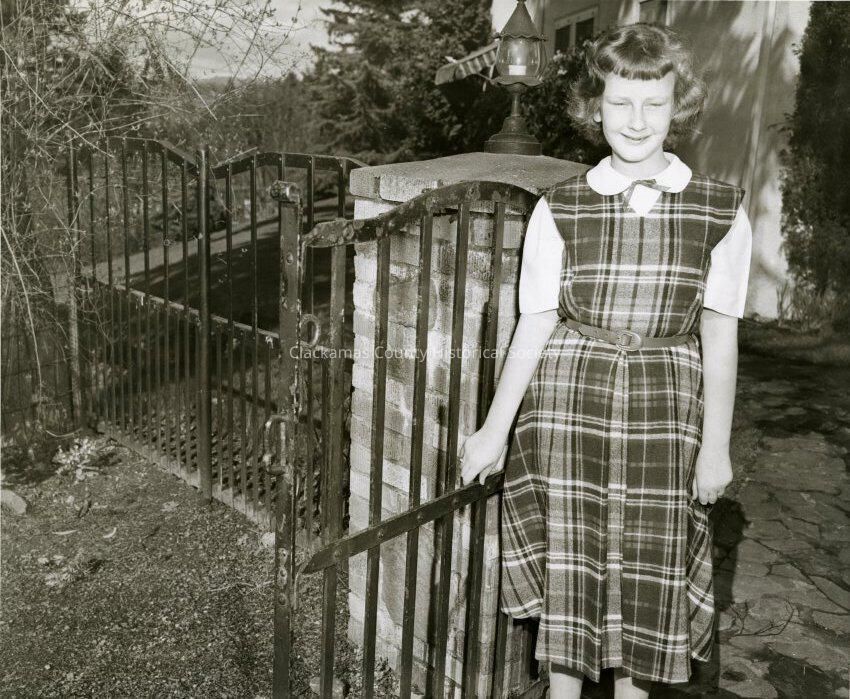 Girl standing at Iron Gate, 1950s